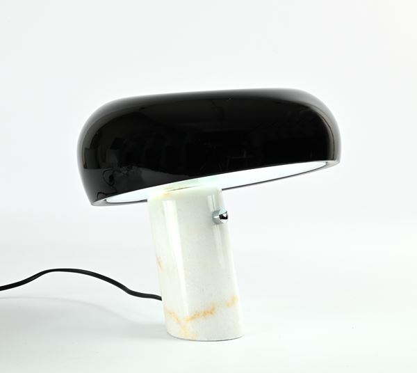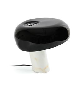 Base in marmo bianco e paralume in metallo laccato nero
