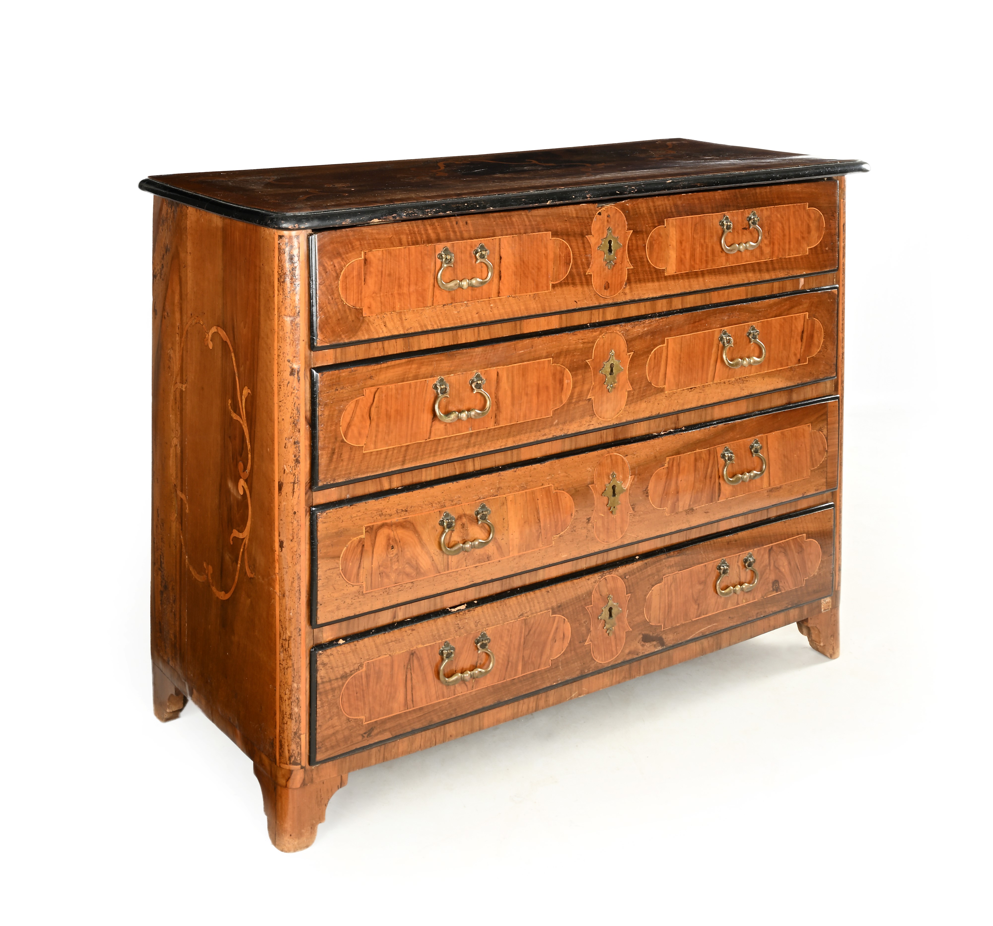 Cassettone in noce e legni di frutto, Piemonte, XVIII secolo
