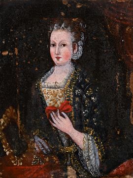 all'interno ritratto di dama in abiti seicenteschi. Dipinto non esaminato fuori dalla cornice