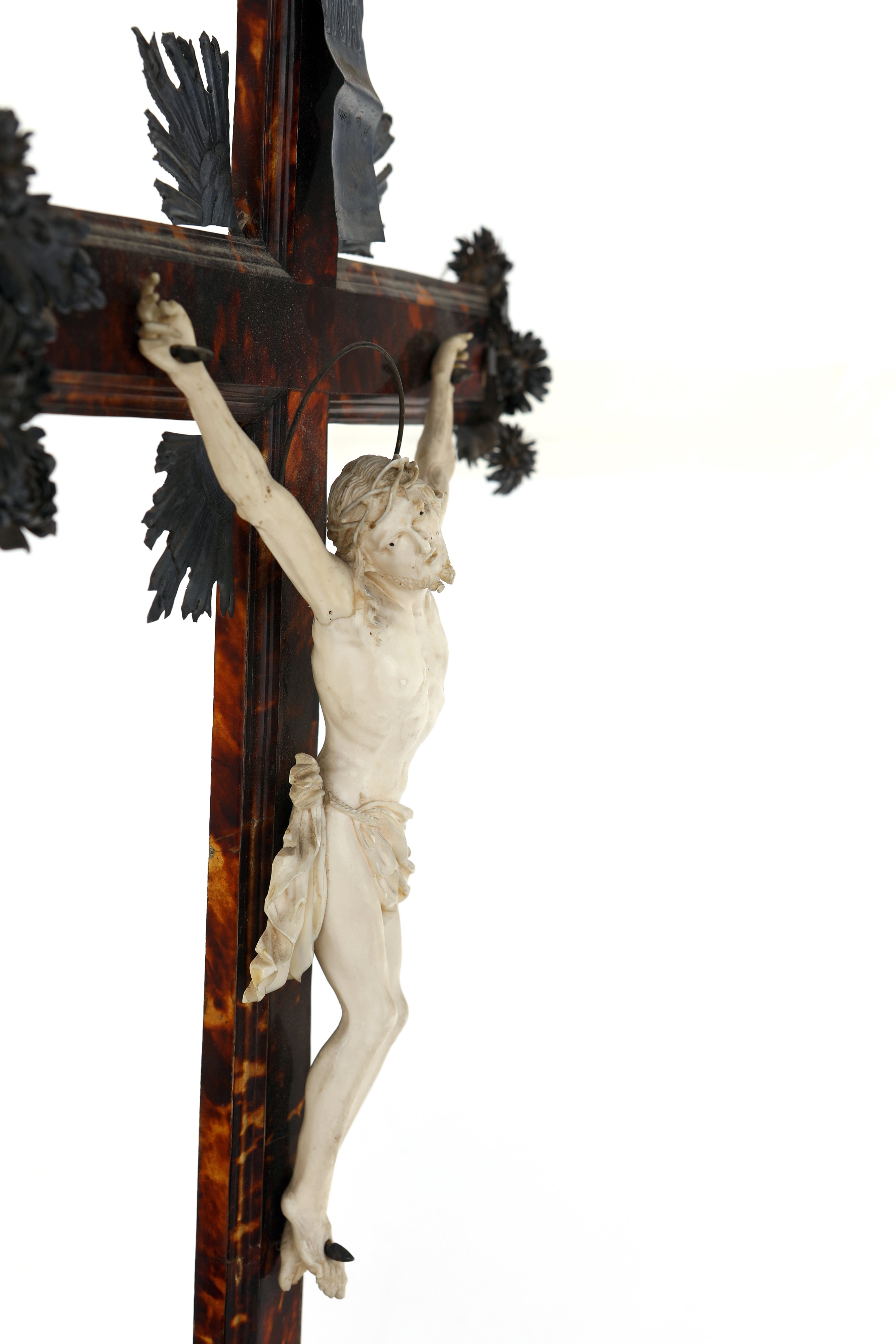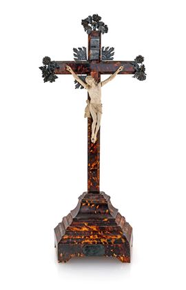 Cristo in avorio con croce in tartaruga e terminali in lamina d'argento, Palermo, XVIII secolo