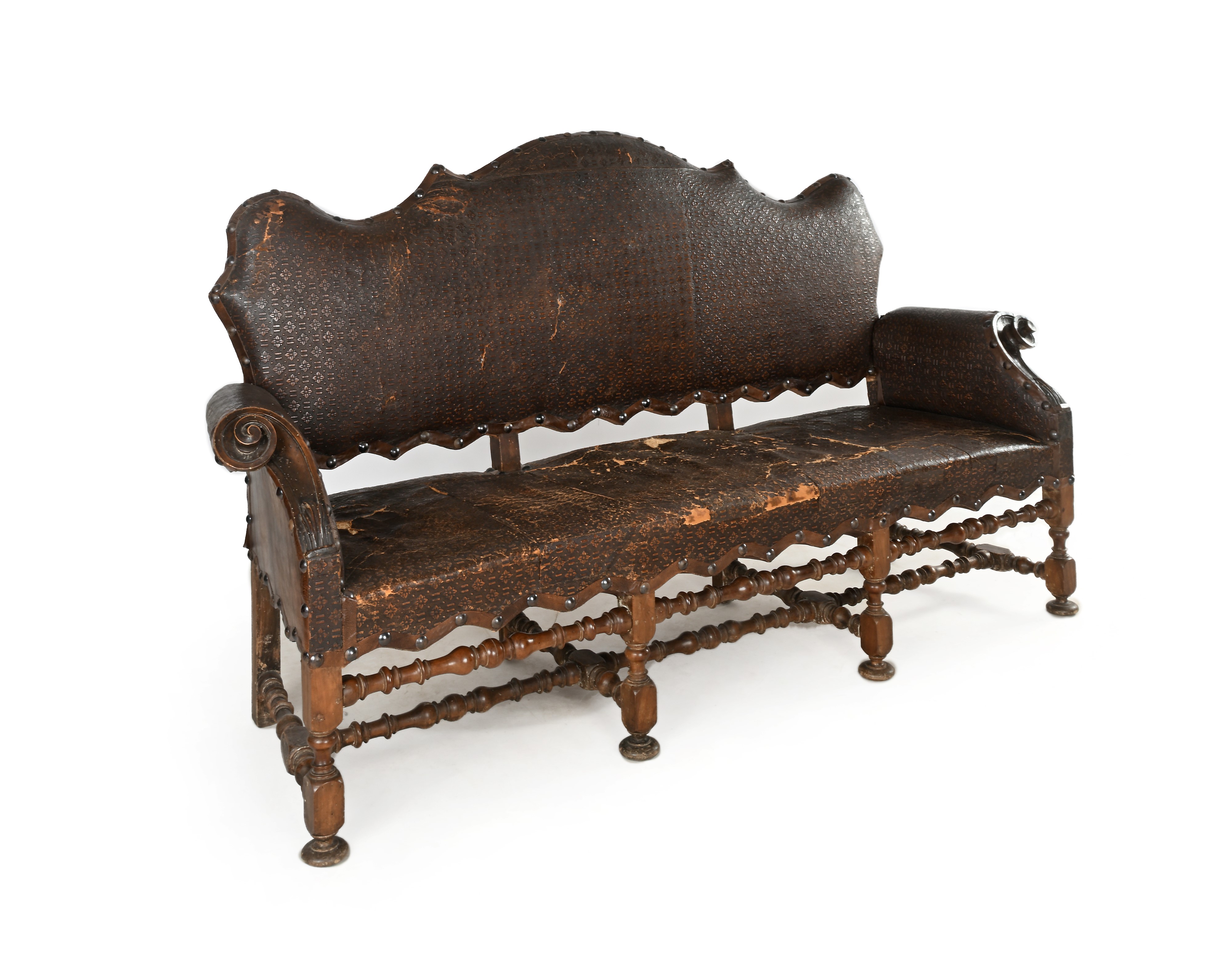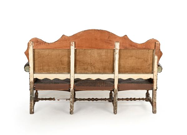 Divano in noce rivestito in cuoio, Italia settentrionale, XVII secolo