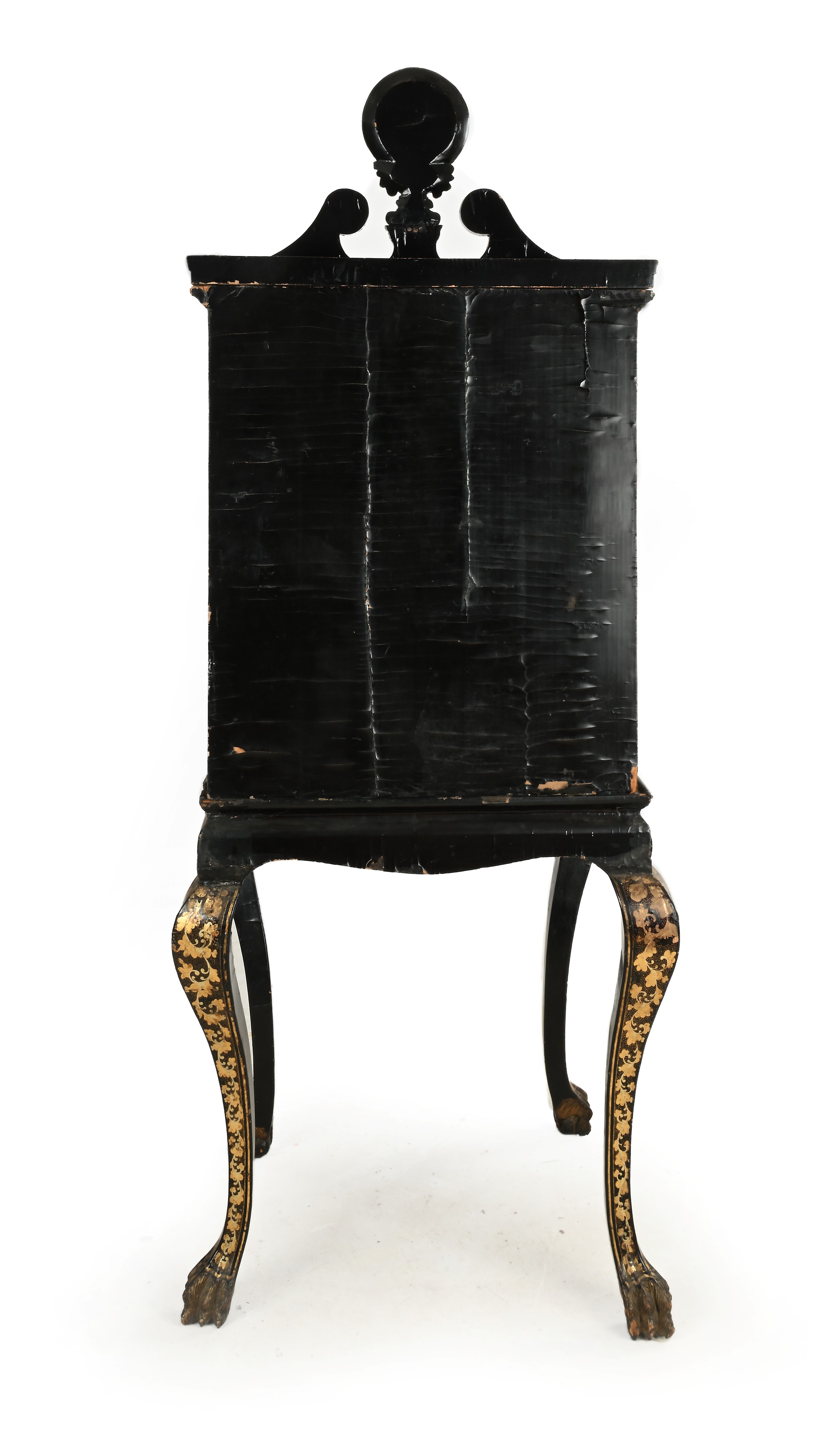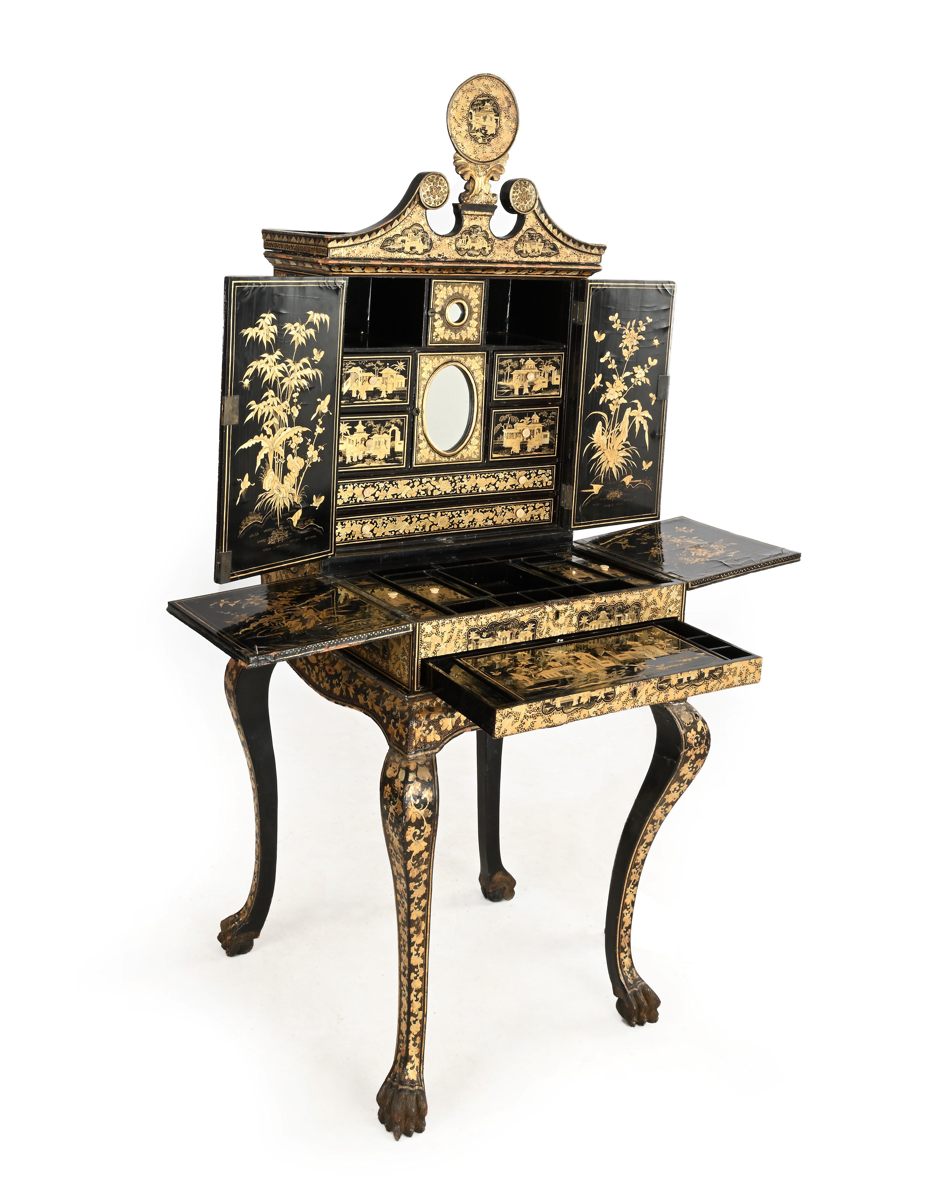 Mobile da lavoro in legno laccato nero con chinoiséries dorate, Inghilterra, XIX secolo