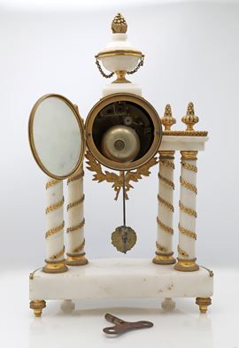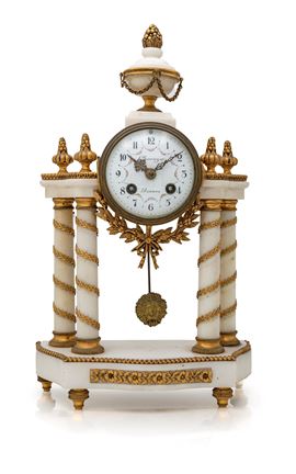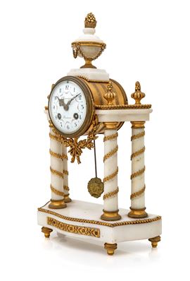 Orologio a portico in marmo bianco, Francia, XIX secolo