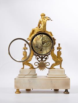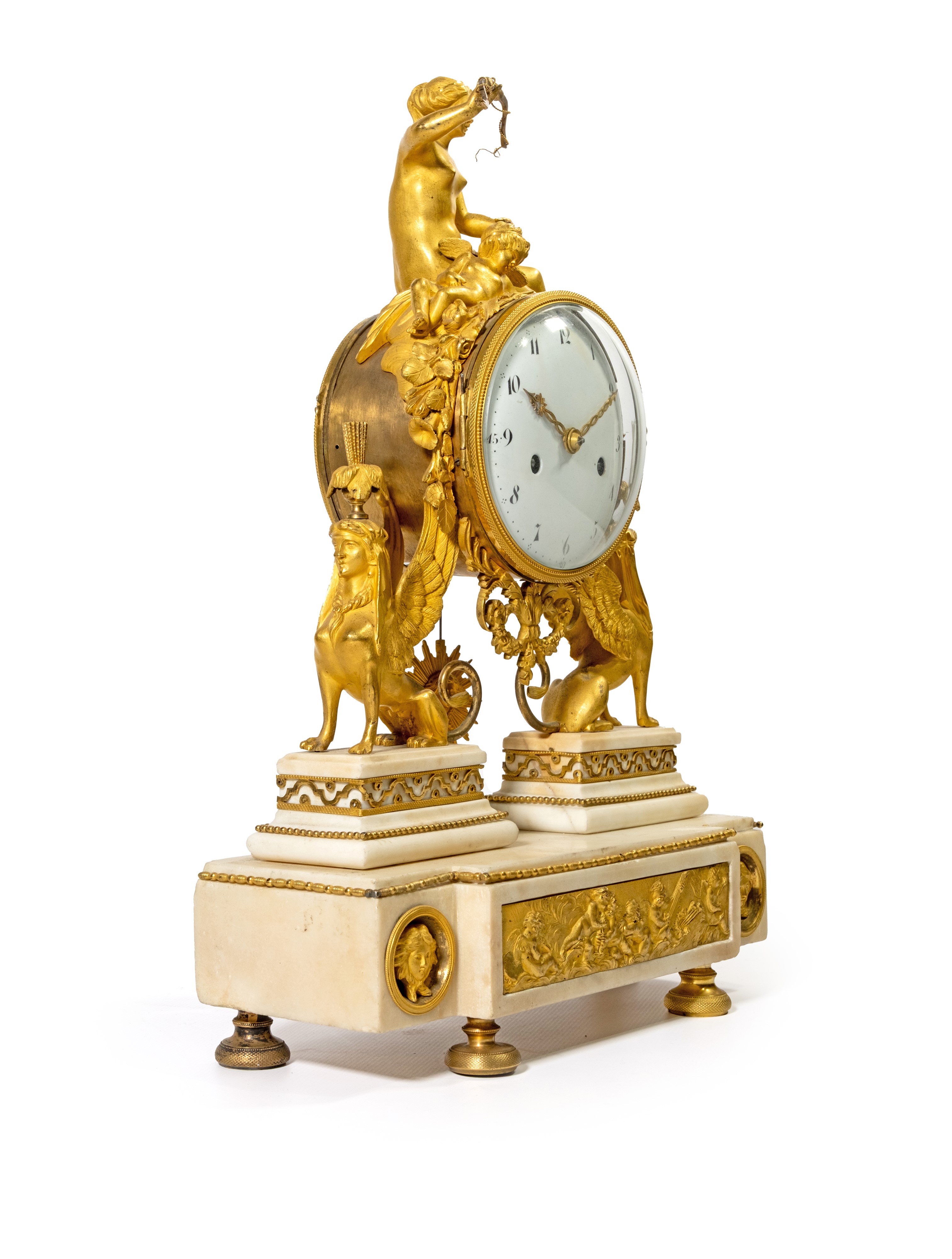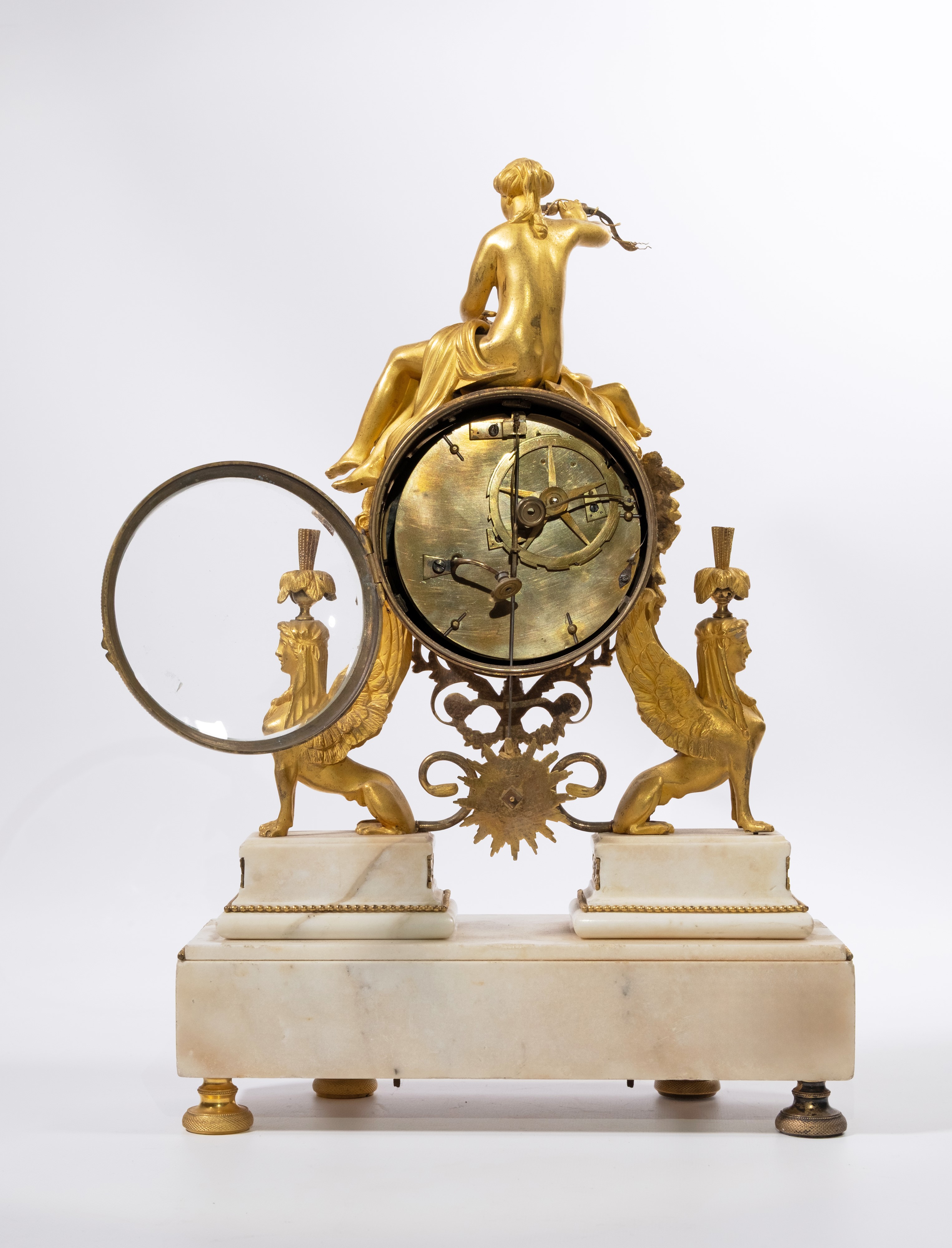 Pendola Direttorio in bronzo dorato e marmo bianco, Francia, fine del XVIII secolo