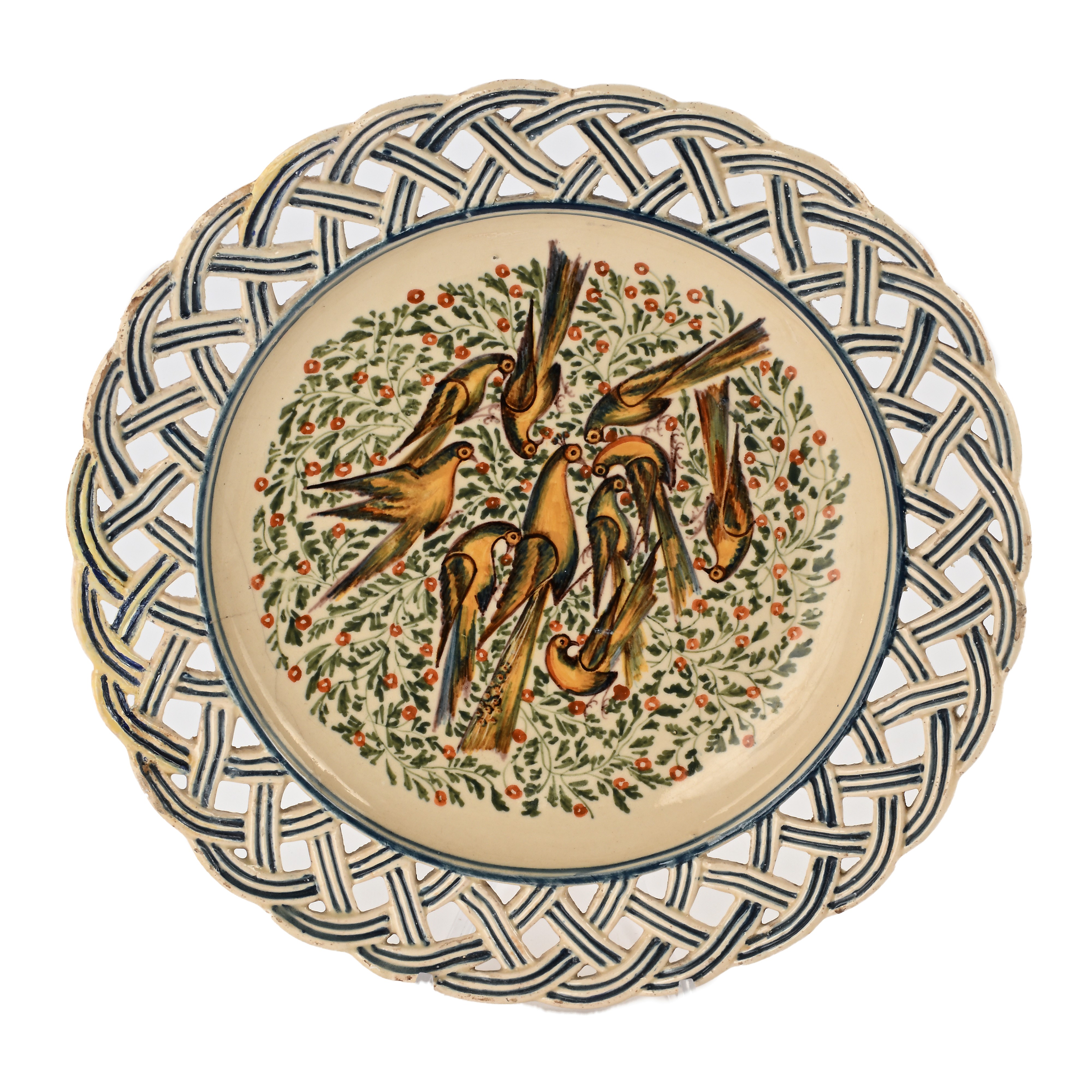 Piatto in maiolica policroma con uccellini, manifattura novese Baccin - Cecchetto, XIX secolo