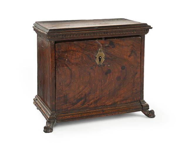 Piccolo monetiere in noce e radica, XVII secolo