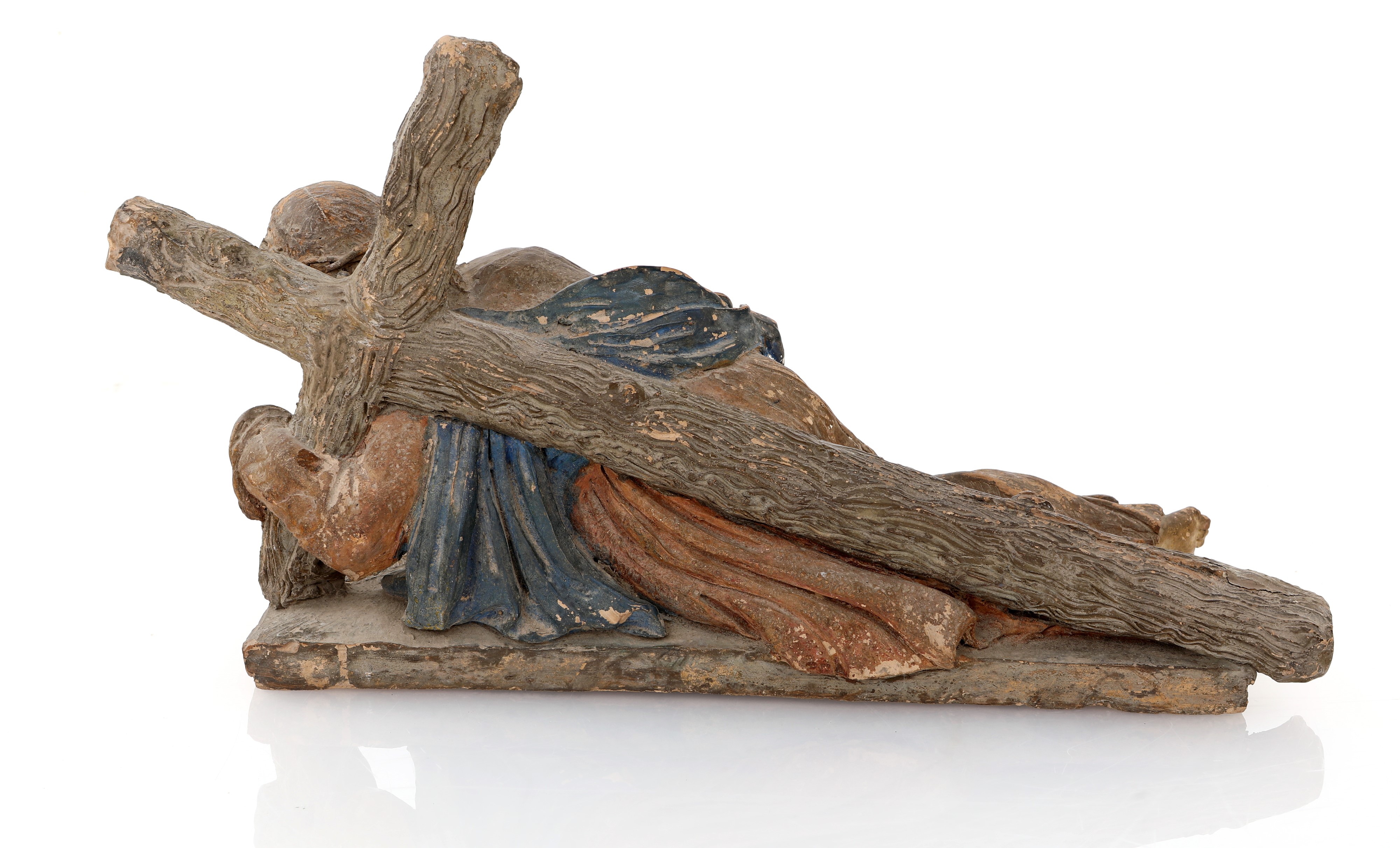 la scultura raffigura una delle stazioni della Via Crucis, con figura di Cristo ritratto carponi con la croce sulla spalla