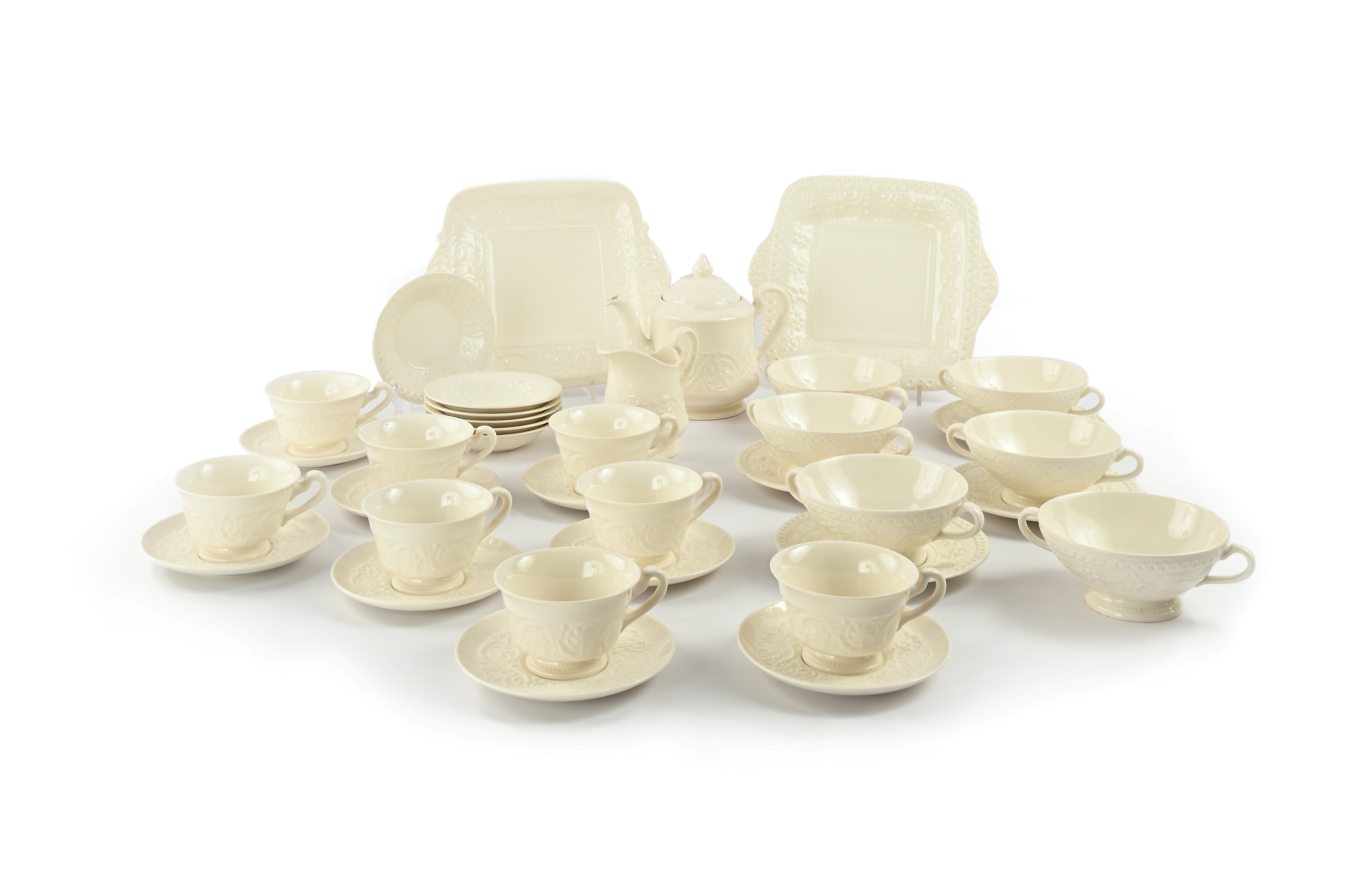 Unito ad un servizio da caffè composto da 7 tazzine ed 8 piattini ed un servizio da tè composto da 8 tazze con piattino, teiera e lattiera.