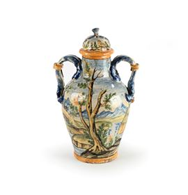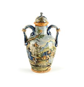 Vaso biansato con coperchio in maiolica policroma, Castelli d'Abruzzo, XIX secolo