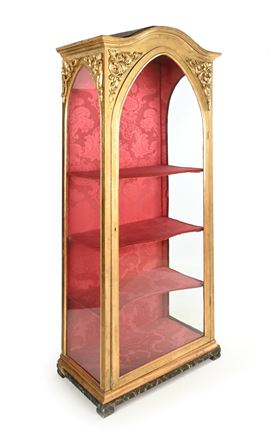 Vetrina in legno dorato con anta centinata, XIX secolo