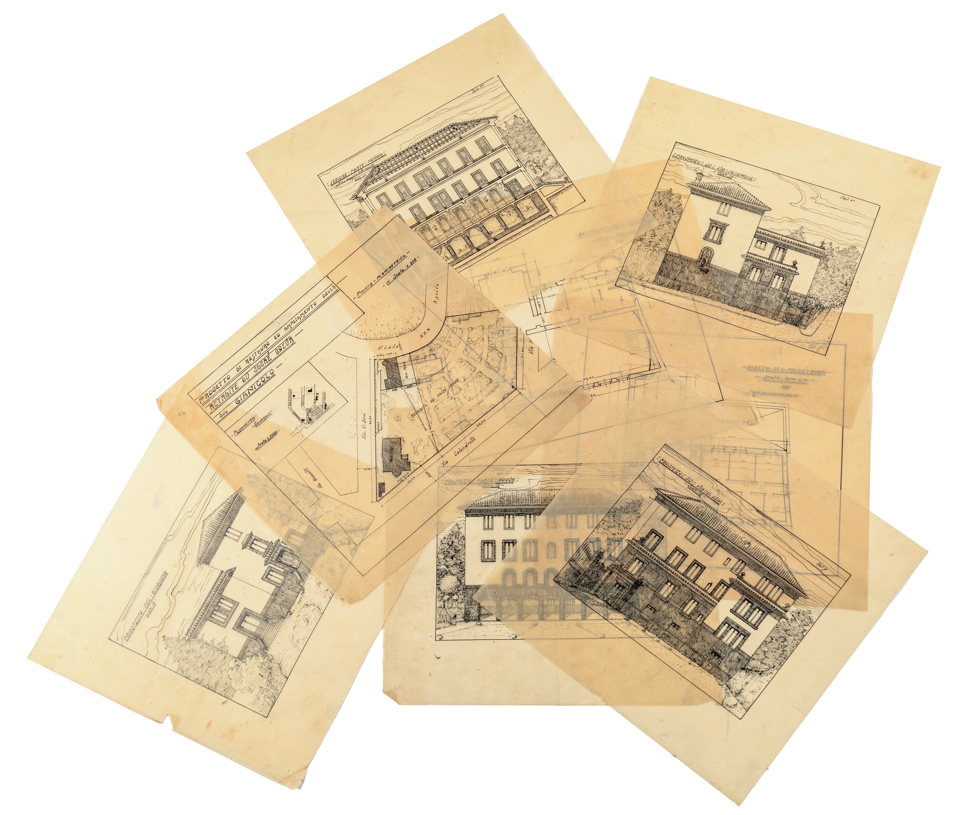 9 tavole per Progetto di restauro ed ampliamento della retraite du sacre coeva sul Gianicolo