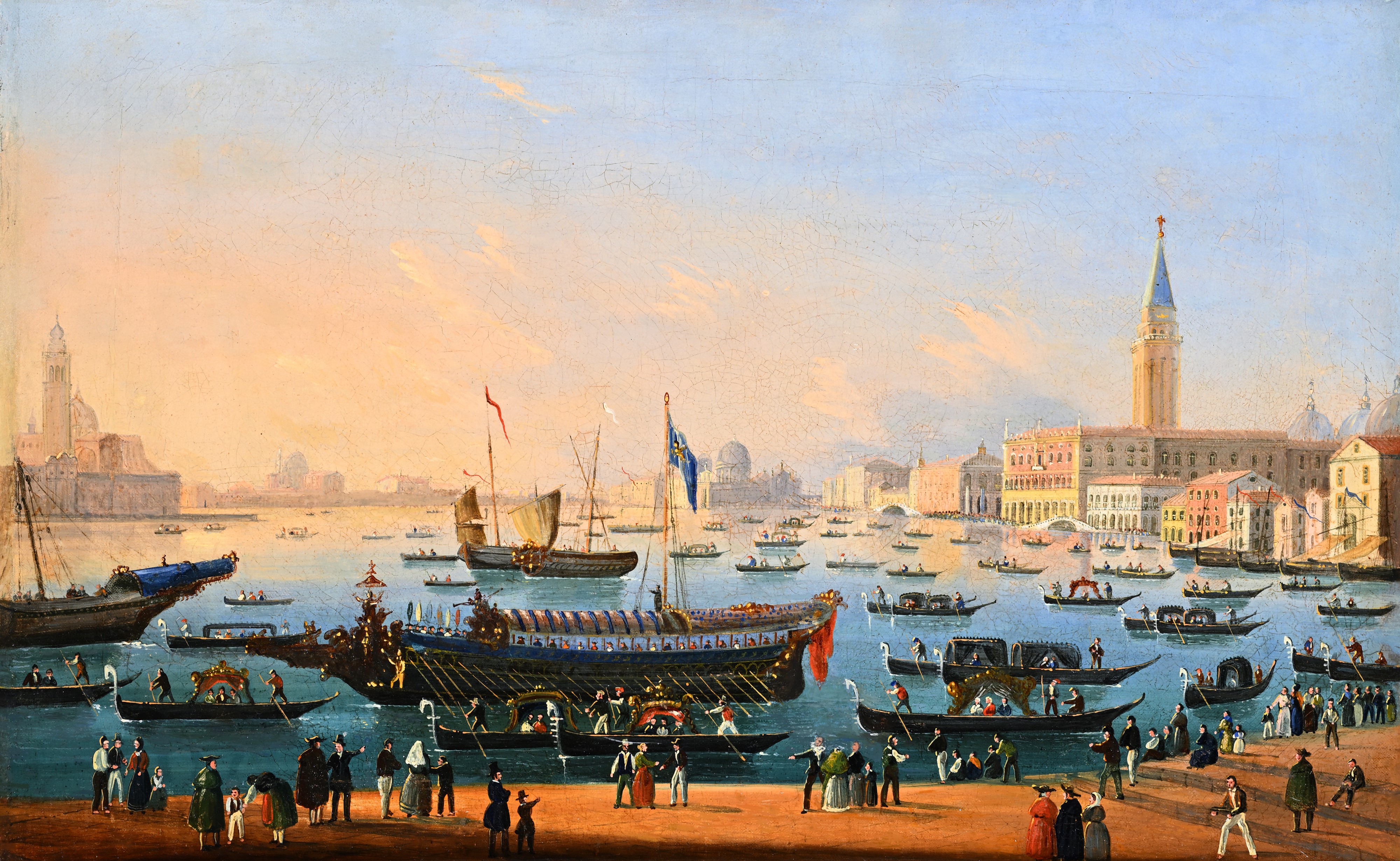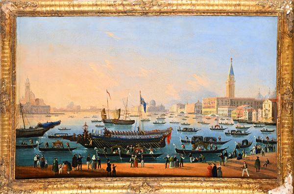 b) Il Bacino di San Marco con il Bucintoro, Olio su tela, cm 42,5x69,5 - con cornice cm 51x77