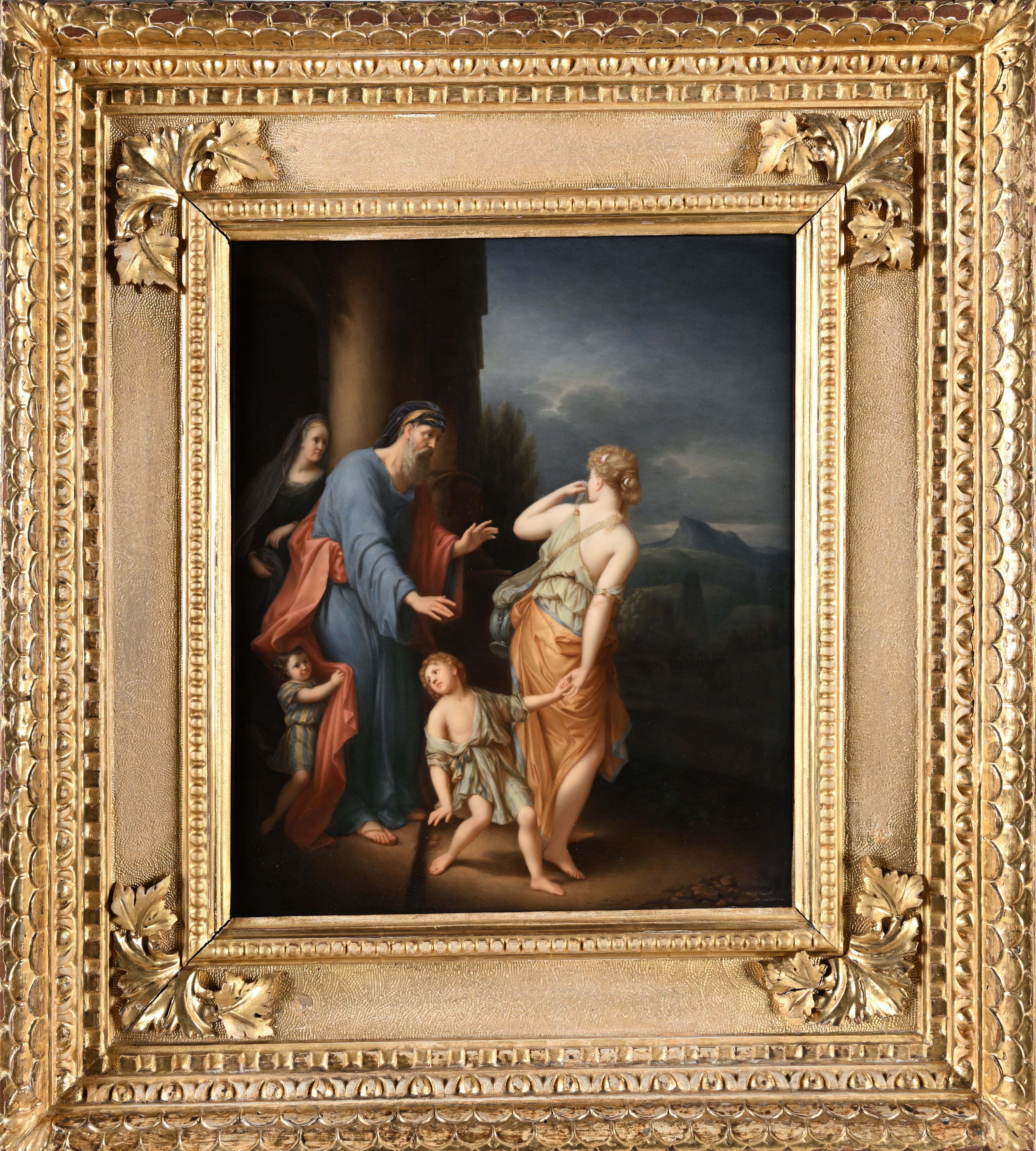 Agar e Ismaele banditi dalla casa di Abramo. Regia manifattura di porcellane Berlino.