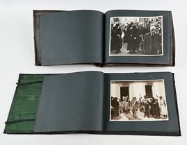 Entro Album originali in piena pelle con fregi e titoli in oro. Rispettivamente 22 e 26 fotografie originali recanti la stampigliatura "Foto Locchi Firenze", montate su cartoncino
