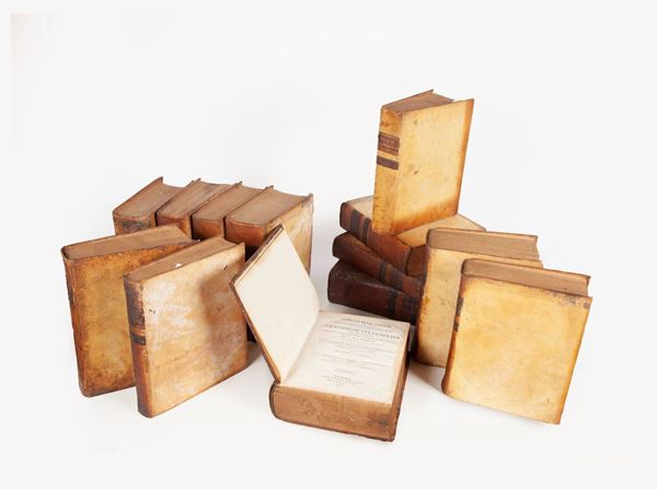 In 4° grande. 4 opere di diritto canonico raccolte in 2 Volumi. Le edizioni in quarto sia del Corpus Iuris Civilis che del Corpus Iuris Canonici costituivano una lacuna nel mercato. Alla fine del XVI secolo a Venezia vedono la luce delle edizioni del Corpus molto maneggevoli e facili da usare. Questa edizione, che rappresenta un capolavoro sia in termini di stampa che di legatura, adotta la versione testuale ufficiale della Chiesa cattolica ad exemplarium Romanum. Ogni opera con proprio frontespizio a due colori con xilografia, xilografie a piena pagina (tra le quali l'Arbor affinitatis, l'Arbor consanguinitatis e l'Arbor seu figura declarativa tituli de jure patronatus) nel testo su 2 colonne numerate. Legature in piena pergamena coeva con 4 nervi e titoli manoscritti al dorso. Tagli di colore blu. Qualche strappo e piccole mancanze.