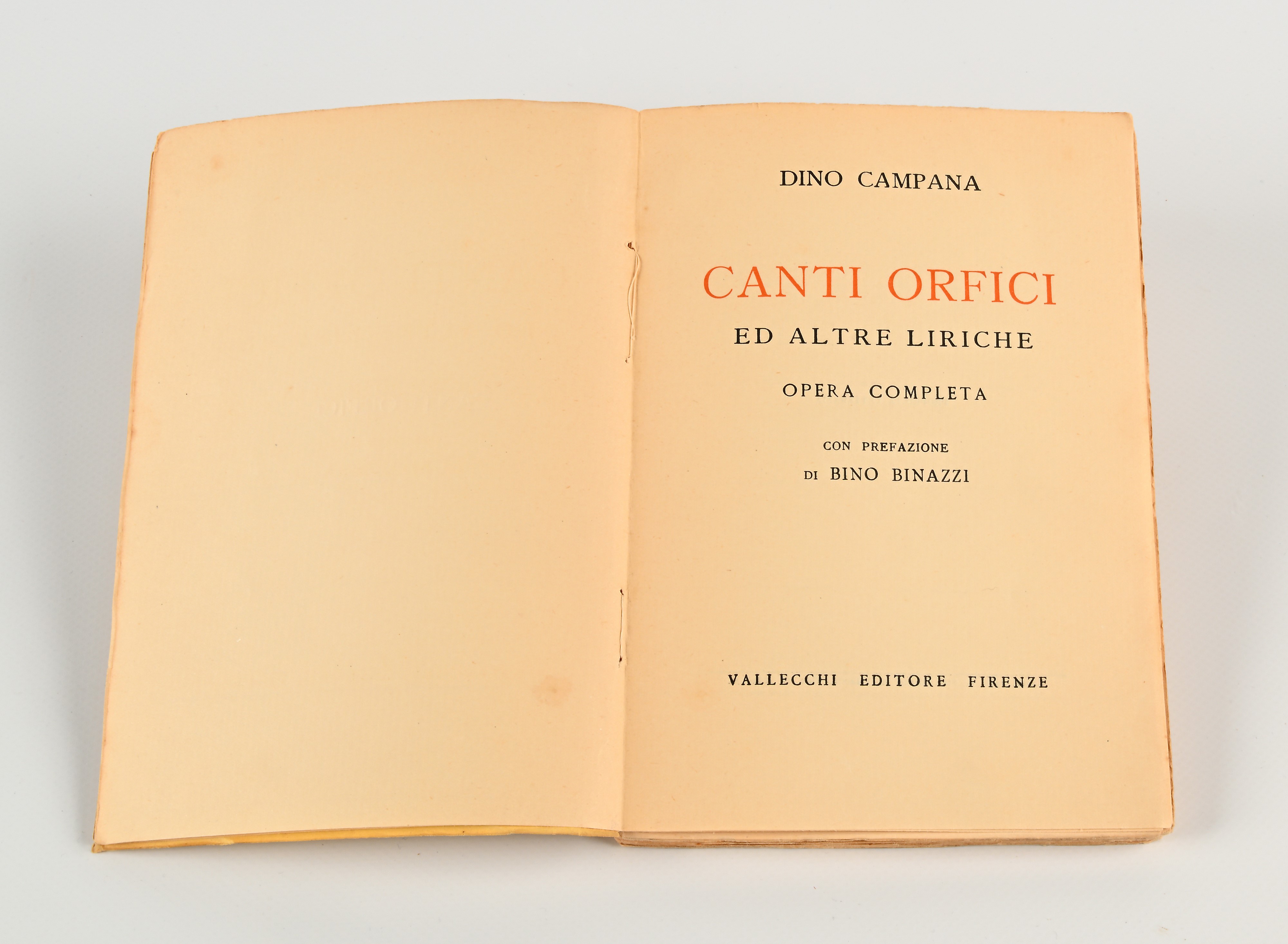 Rara ed importante seconda edizione curata da Bino Binazzi che Include il capolavoro di Dino Campana con cinque liriche aggiuntive apparse sui periodici con varianti rispetto all'edizione del 1919