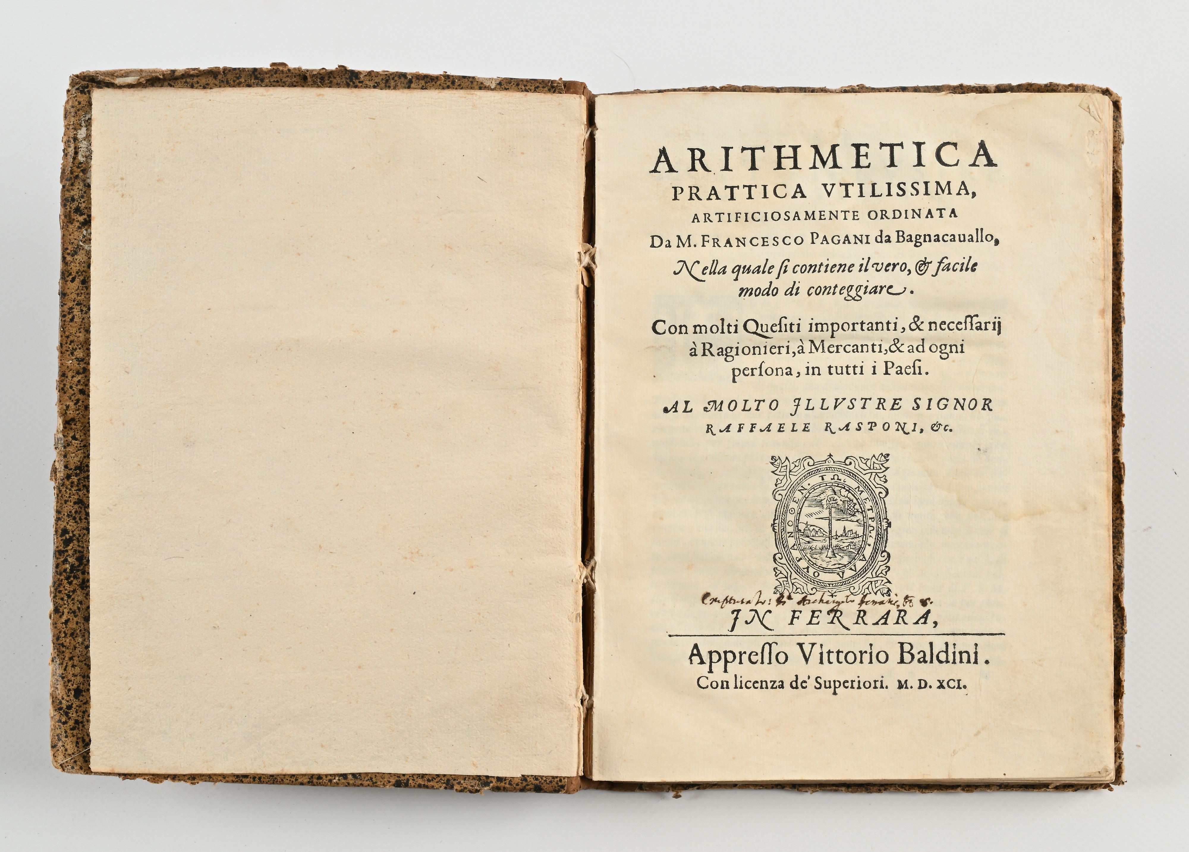 Francesco Pagani - Arithmetica prattica utilissima artificiosamente ordinata, Vittorio Baldini, Ferrara 1591