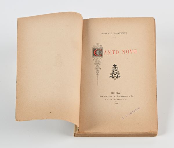 Gabriele D'Annunzio - Canto Novo Prima edizione in sole 500 copie, Sommaruga, Roma 1882