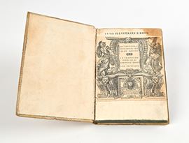 In 4° Mancante della parte superiore del Frontespizio montato su carta bianca. Rara Prima edizione delle "Trasformationi", ovvero prima traduzione in lingua italiana delle "Metamorfosi" di Ovidio. Illustrata con numerose splendide xilografie raffiguranti scene delle Metamorfosi nel testo e all'inizio di ogni canto, dove si trovano capilettera anch'essi illustrati. Molte illustrazioni sono state parzialmente acquerellate da mano antica. Inversione di Qiii con Qiiii. Bruniture alle prime carte. Legatura posteriore in mezza pergamena con titolo su tassello. Tagli colorati
