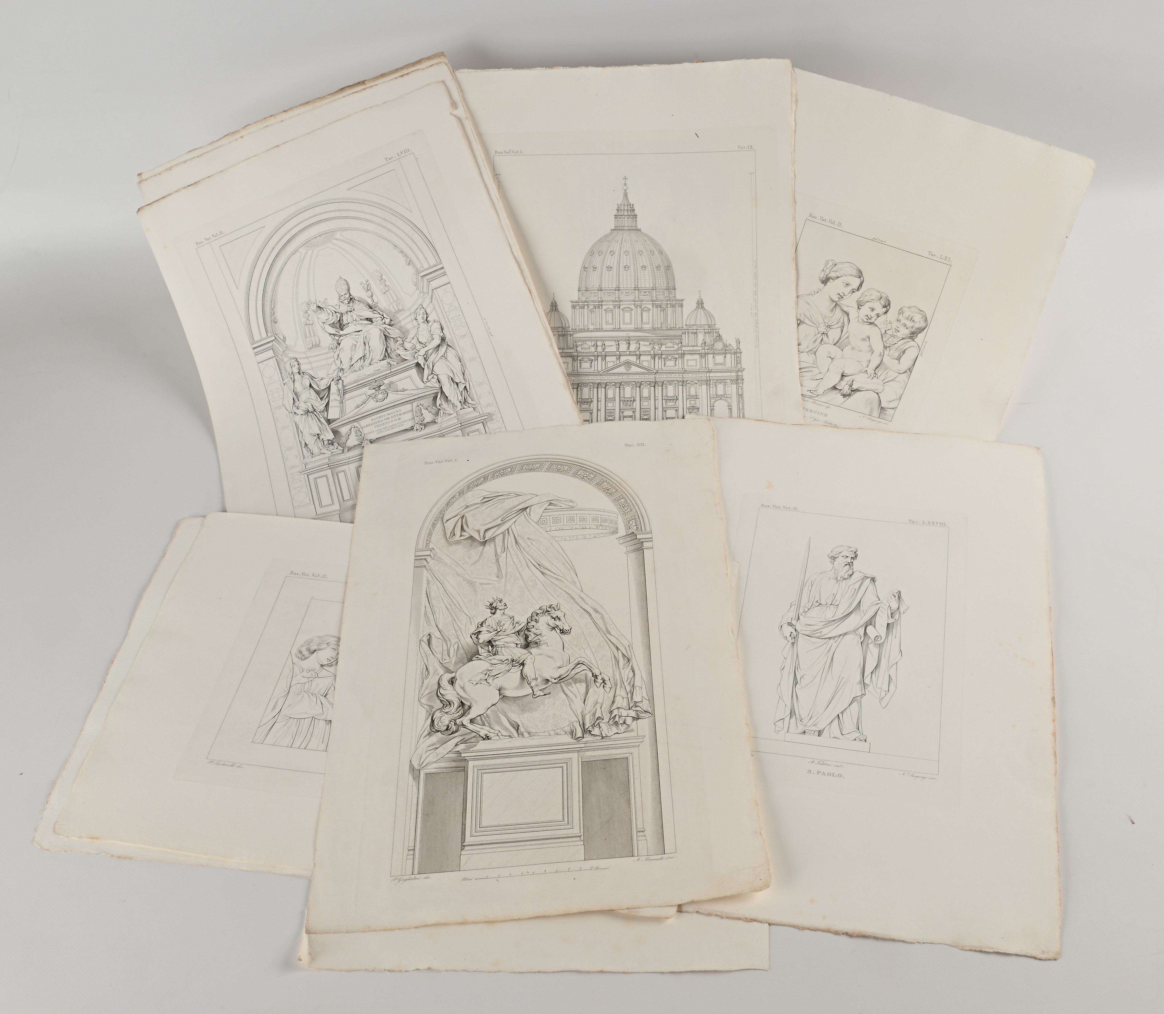 Lotto 15 incisioni tratte dal Primo e Secondo Volume sulla Basilica Vaticana dell'opera di Erasmo Pistolesi Il Vaticano descritto ed illustrato, Tipografia Società Editrice, Roma 1829