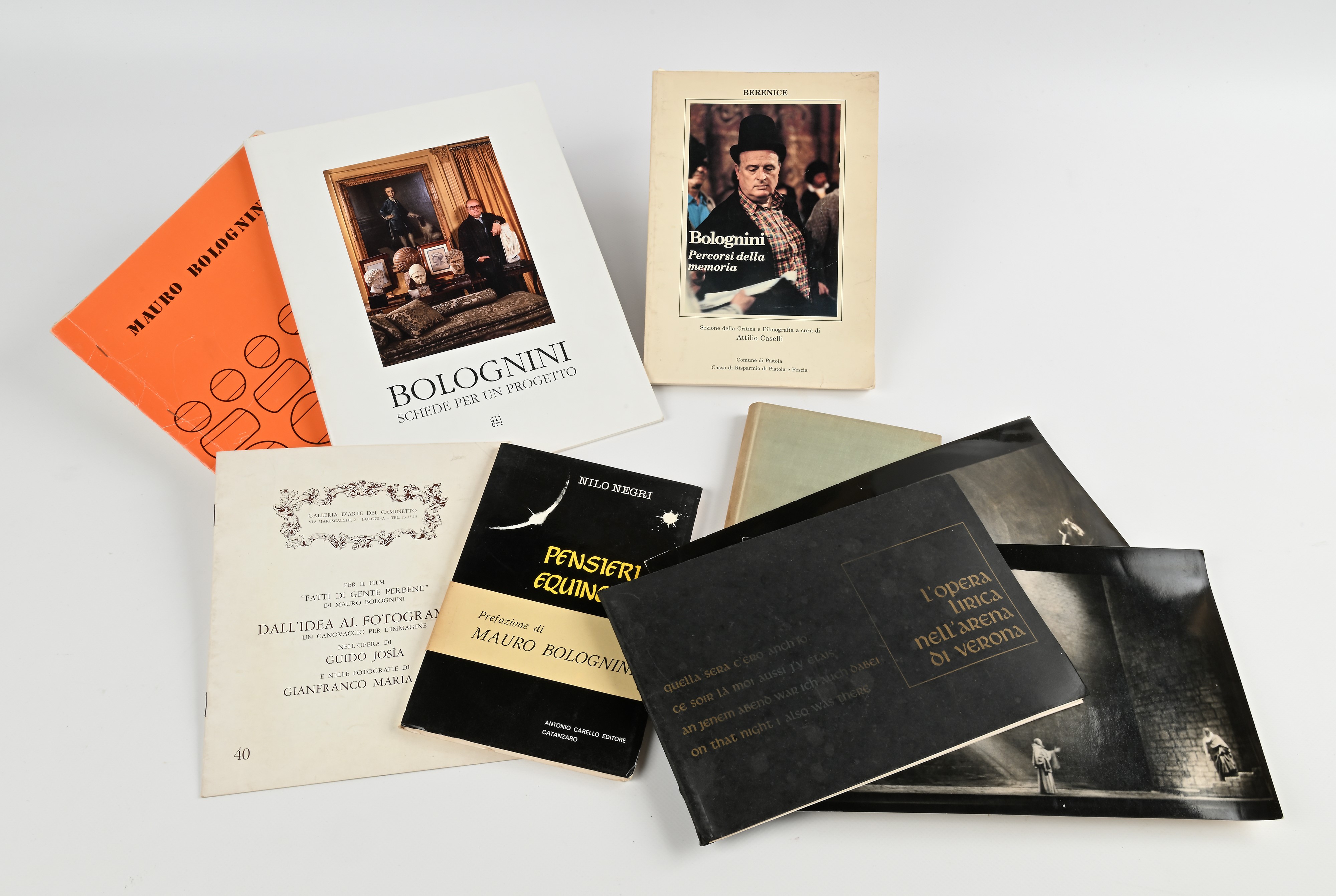 Lotto di 6 volumi su Mauro Bolognini di cui 1 volume con dedica autografa; 2 foto di scena del Manfredi e 1 Album fotografico della Turandot all'Arena di Verona colla regia di Mauro Bolognini