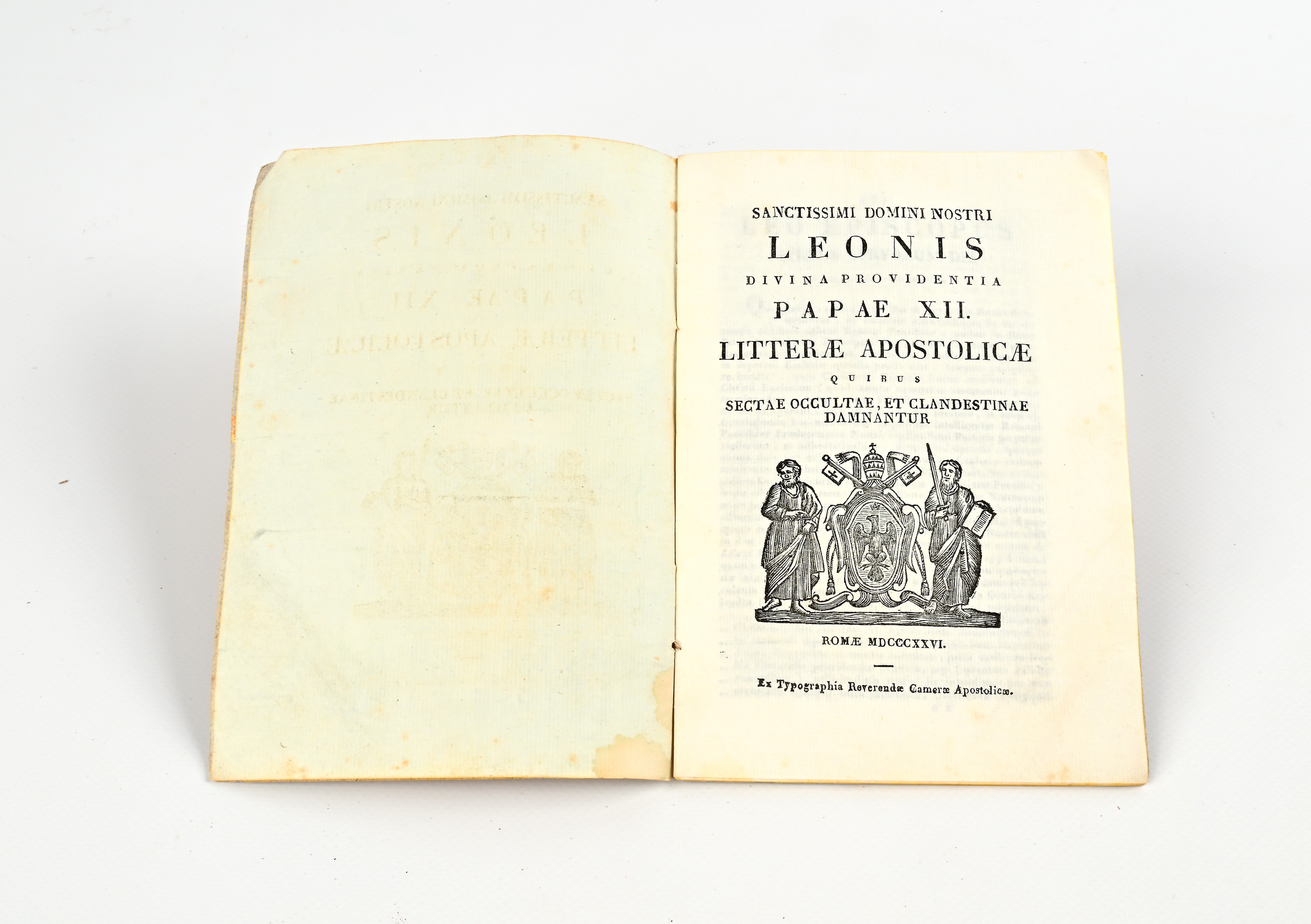 Sanctissimi Domini Nostri Leonis Papae XII Litterae Apostolicae quibus Sectae Occultae et clandestinae damnantur, Camera Apostolica, Roma 1826