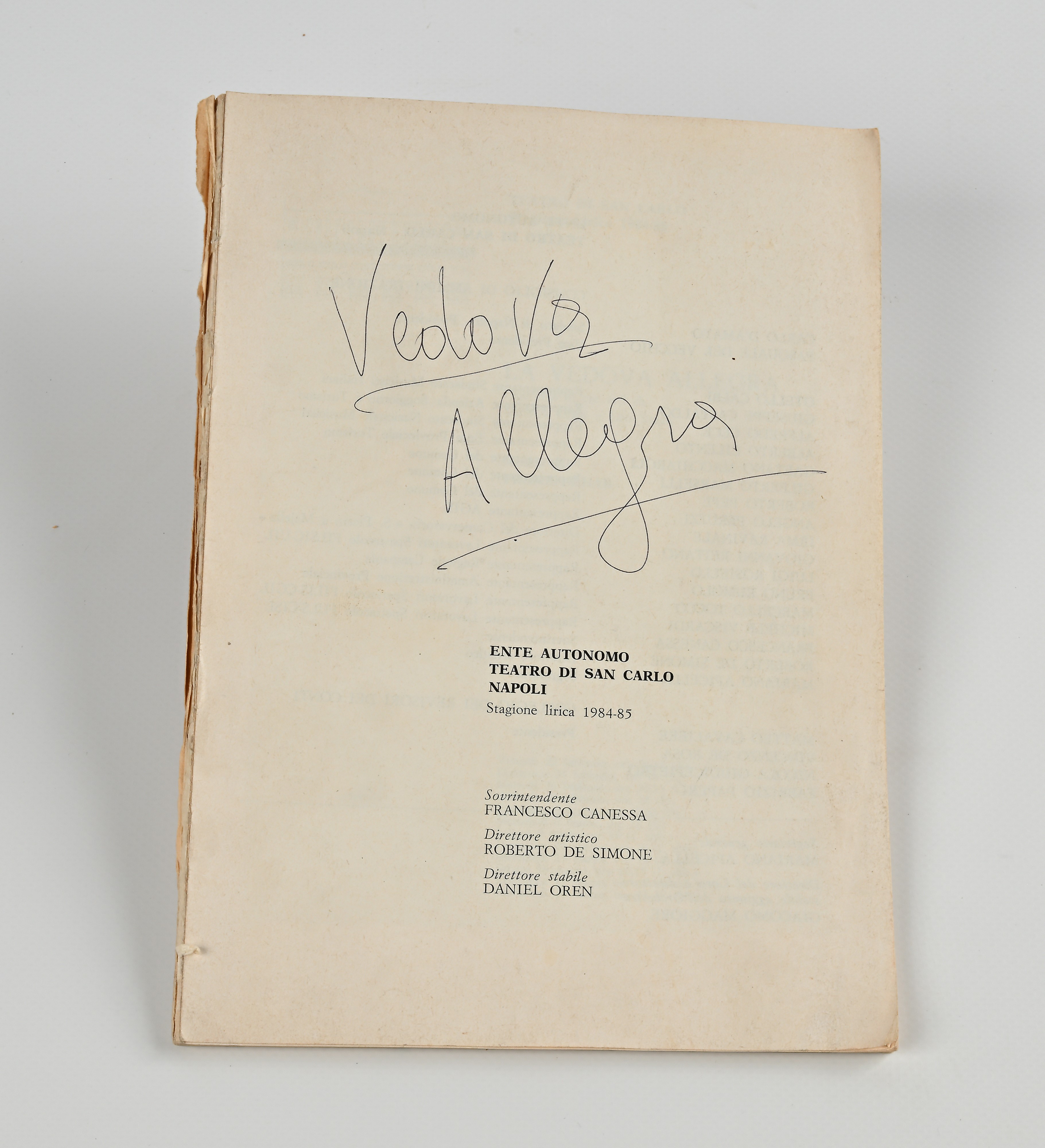 Vedova Allegra - Libretto di scena con note autografe di Mauro Bolognini della rappresentazione del Regista al Teatro San Carlo di Napoli nel febbraio e marzo 1985