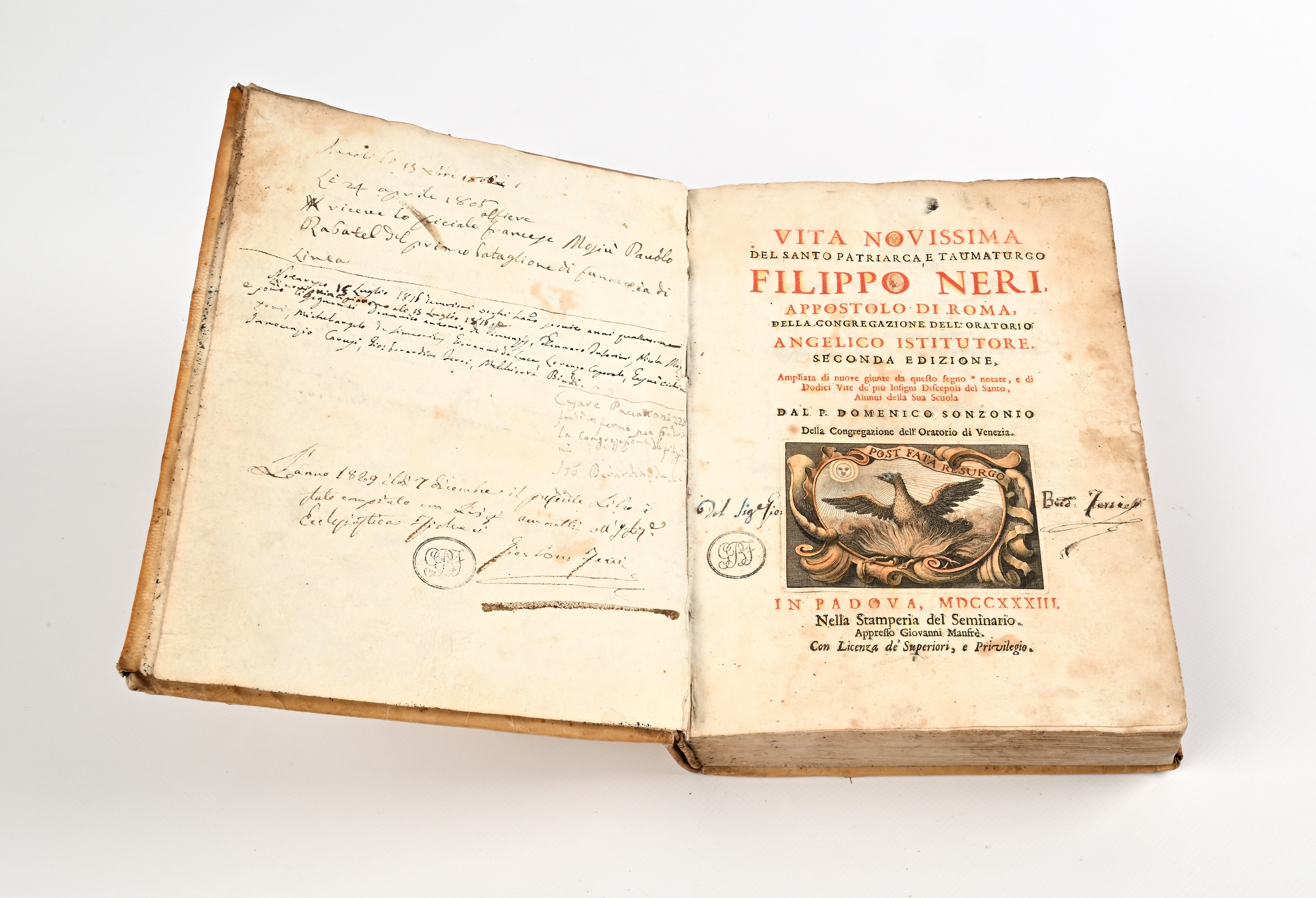 Vita novissima del Santo Patriarca e Taumaturgo Filippo Neri Apostolo di Roma Seconda edizione, ampliata di nuove giunte, Manfrè, Padova 1733