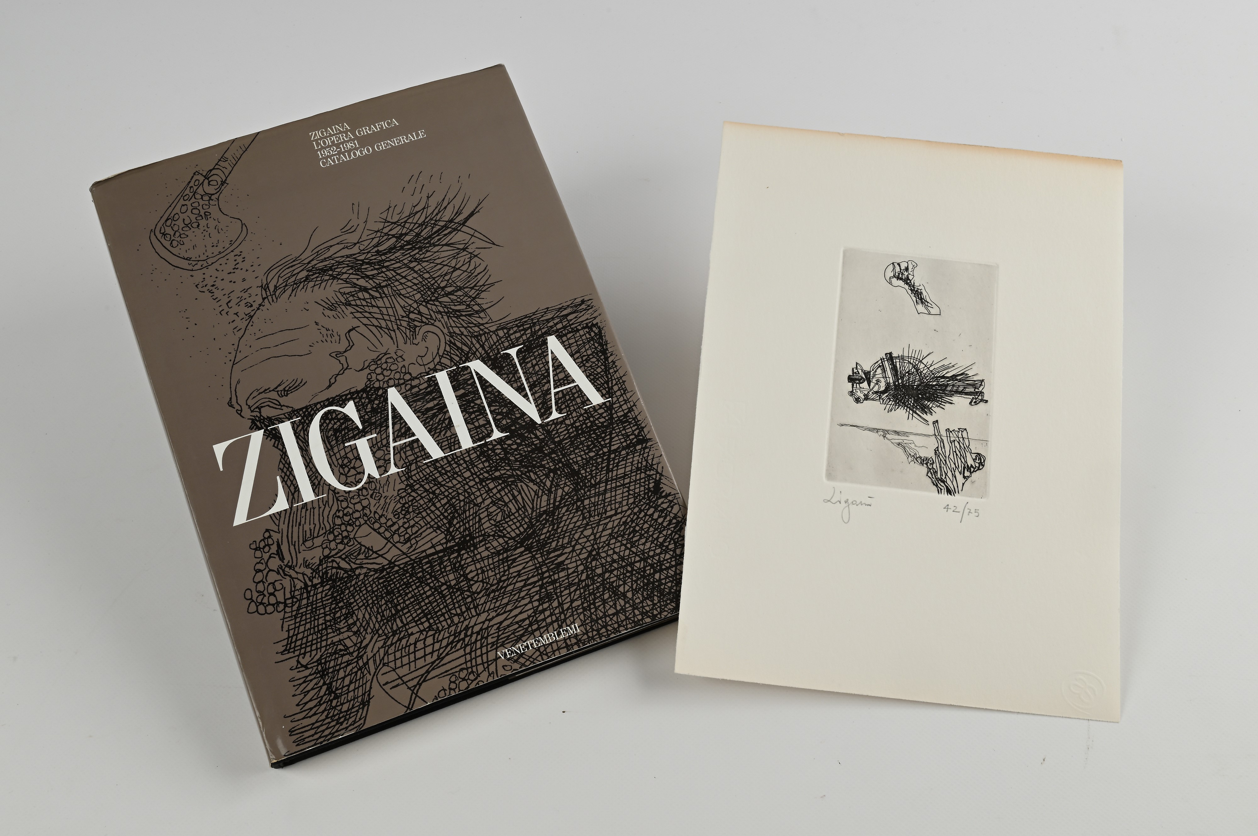 Zigaina. L'opera grafica 1952-1981 Catalogo Generale. Tiratura limitata a 400 copie numerate, ns. n.267, rilegate con acquaforte numerata 42/75 e firmata dall'artista, Venetemblemi, Treviso 1982