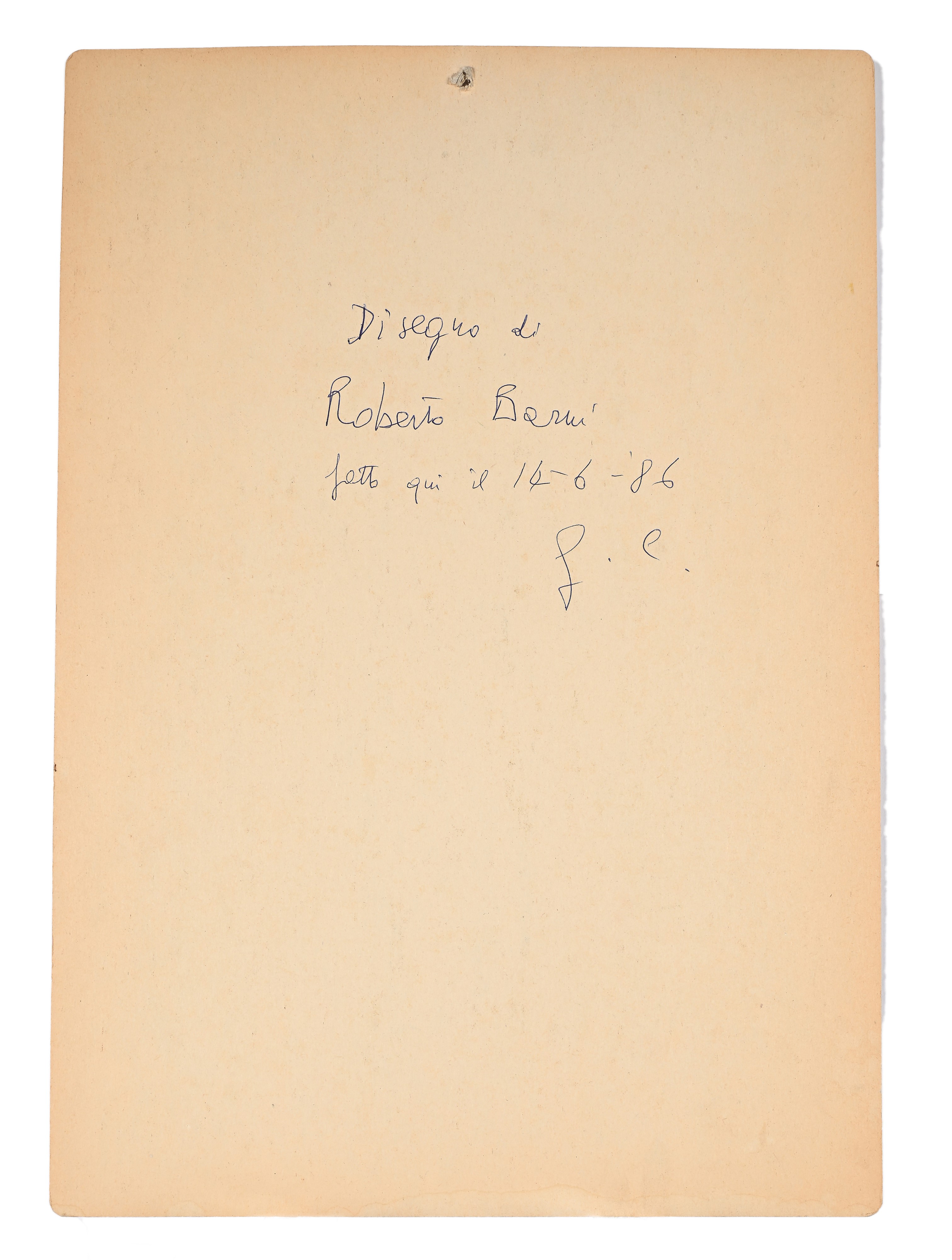 Al verso reca iscrizione e attribuzione di Giovanni Carandente "disegno di Roberto Barni fatto qui il 14/6/1986. G.C."