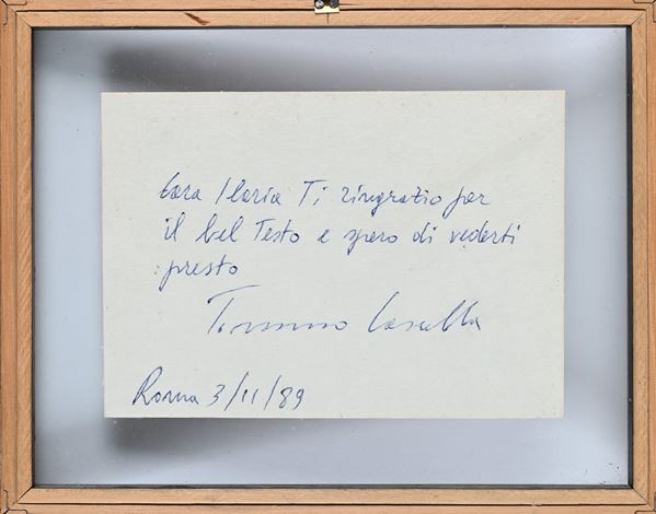 Monogramma in basso a sinistra "T.C.". Al verso dedica, firma e data