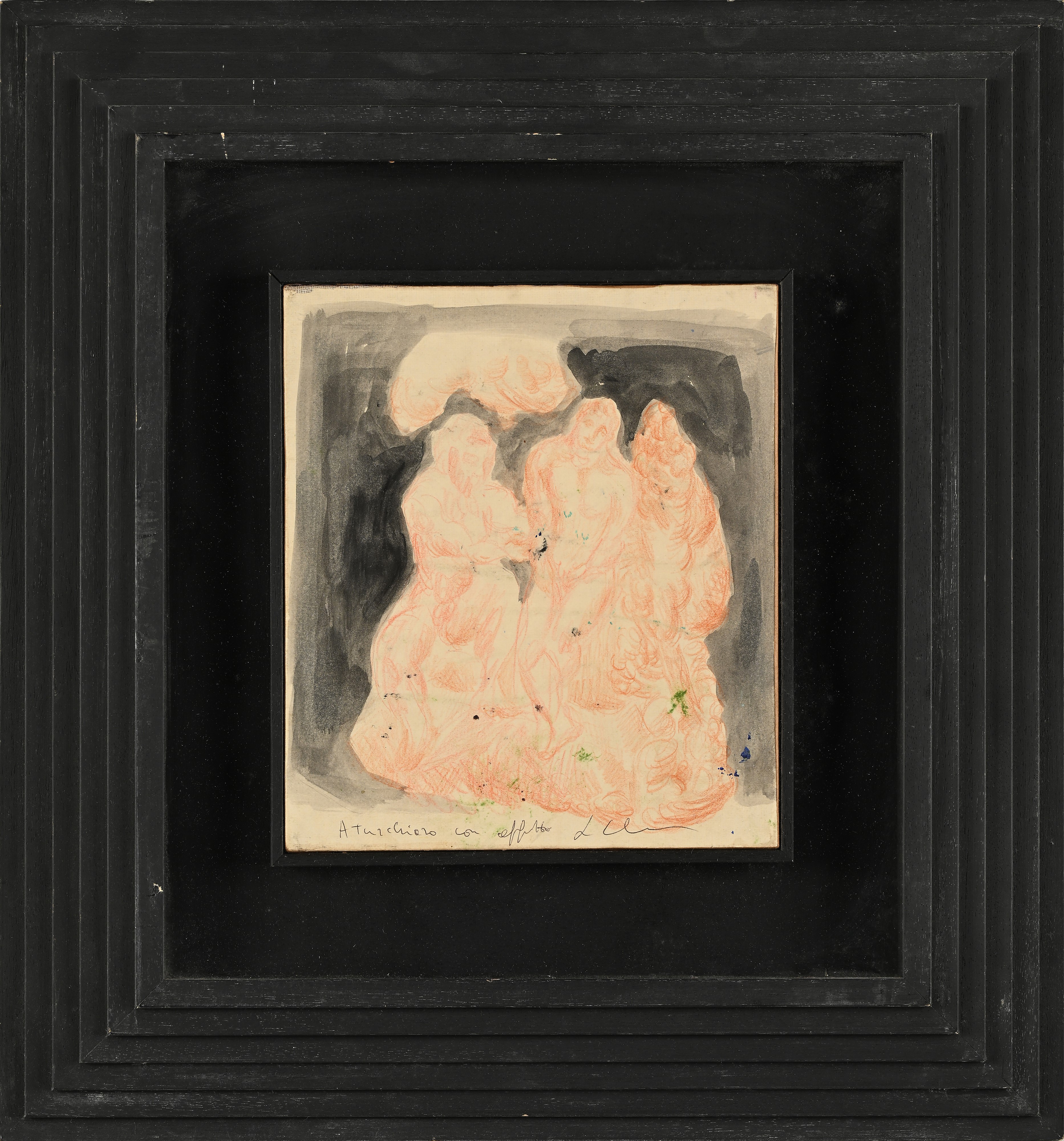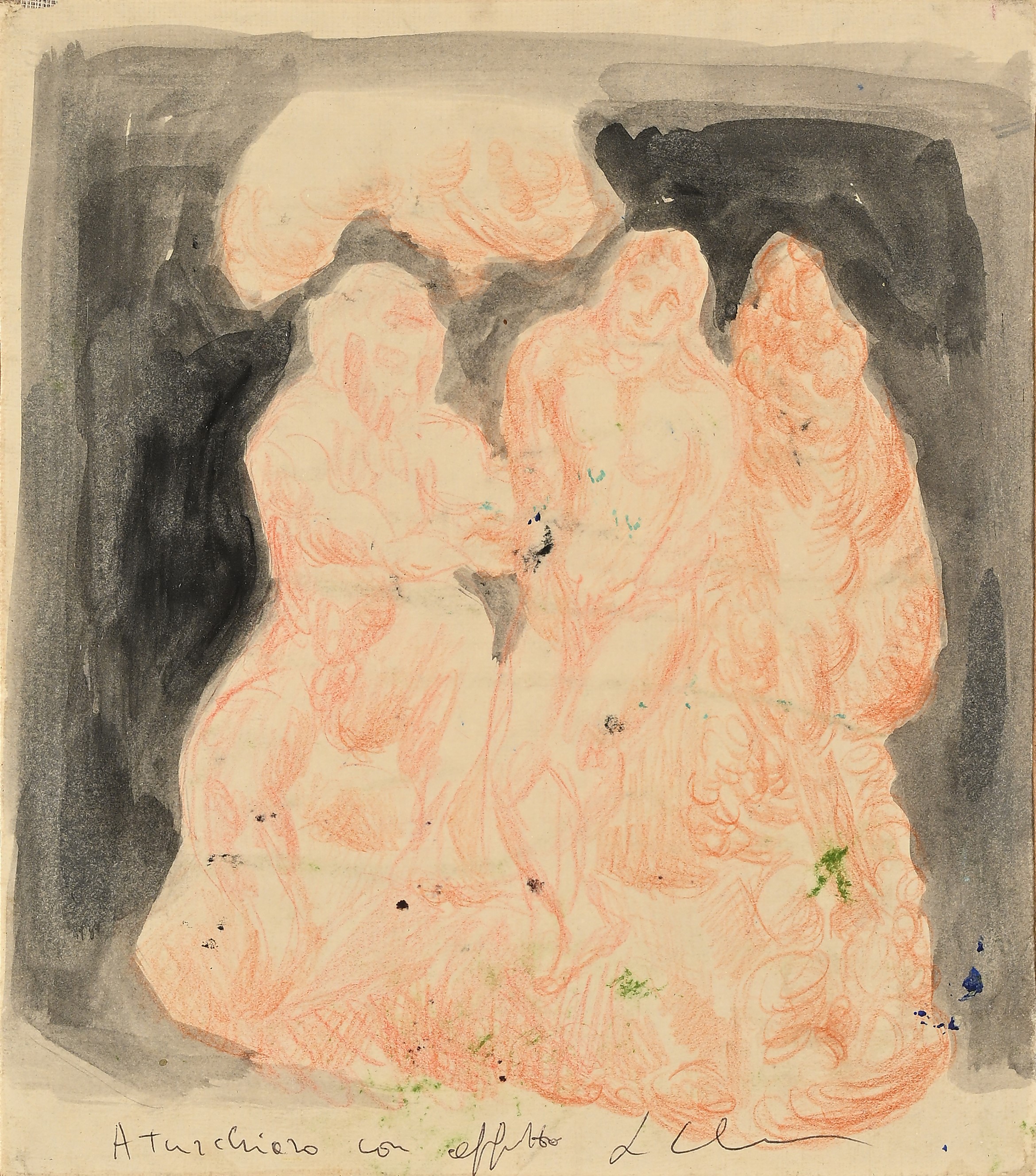 Pastello ceroso e acquarello su carta applicata su tela