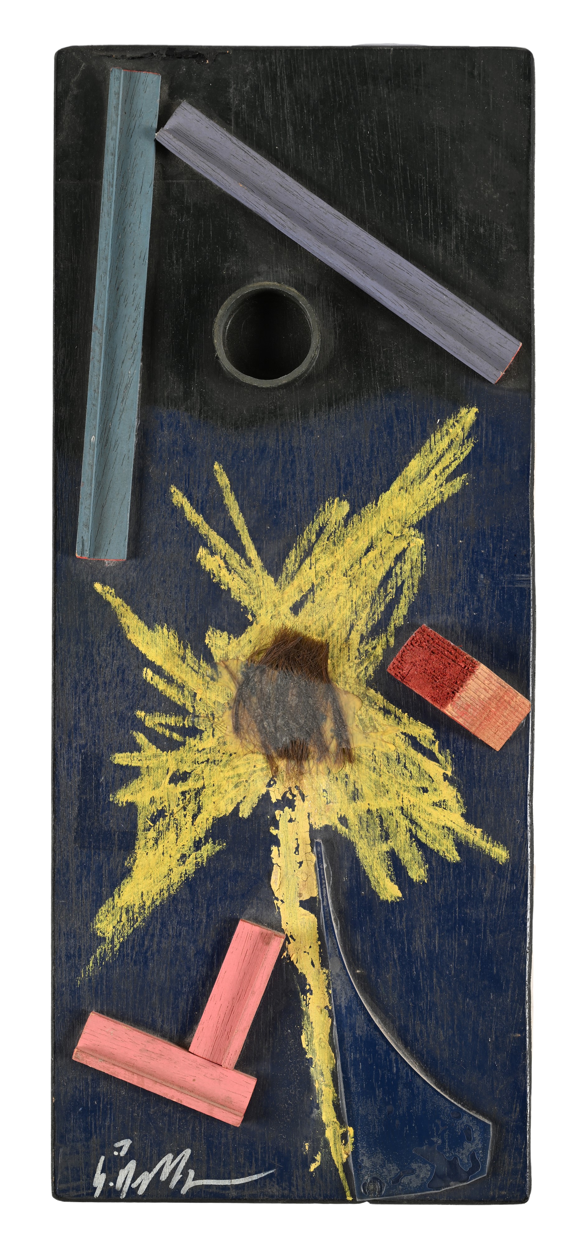 Polimaterico (Legno, vetro, capelli e scotch) e acrilici su tavola