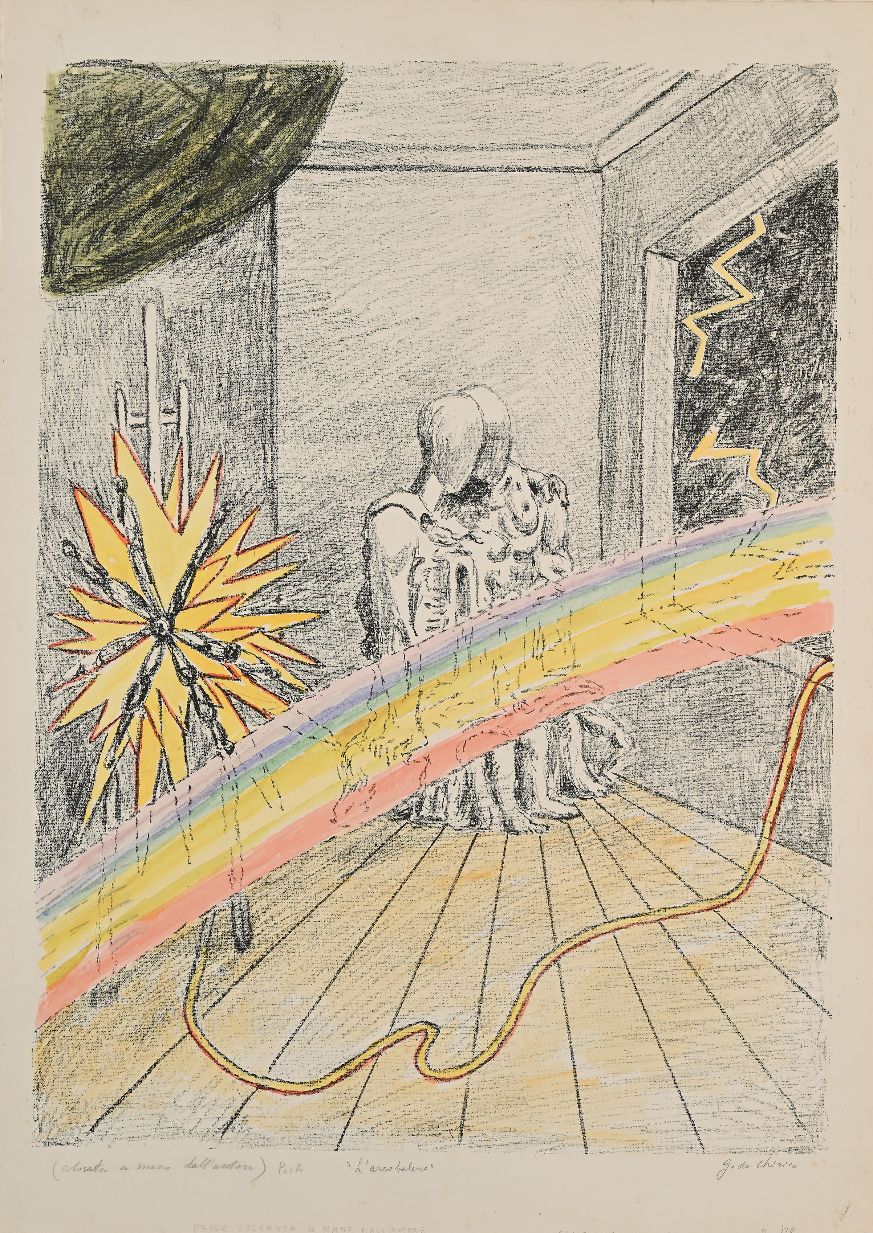 Firma e numerazione "G. De Chiricco p.d.a. Colorata a mano dall'autore".