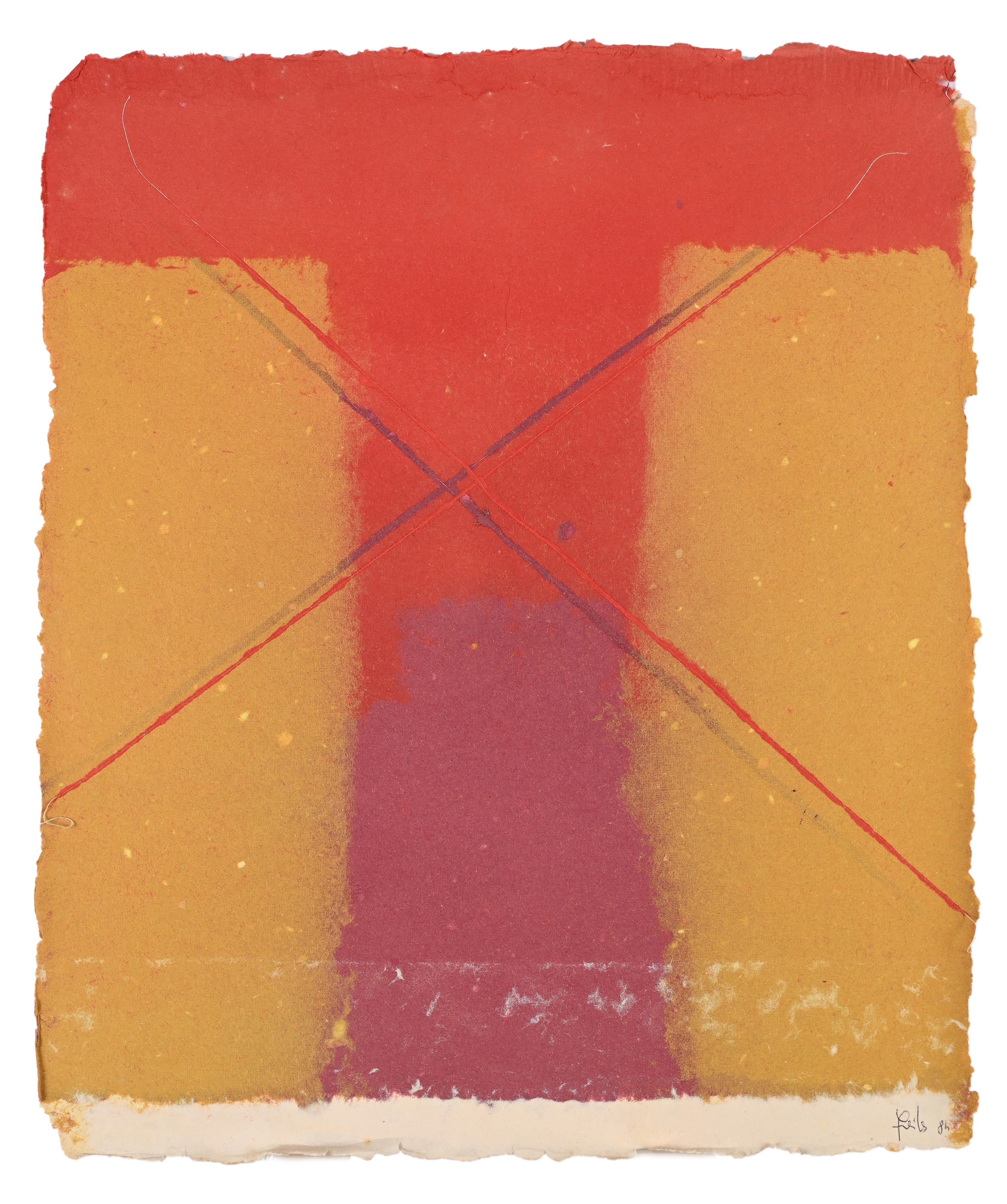 Tempera e filo da cucito su carta artigianale