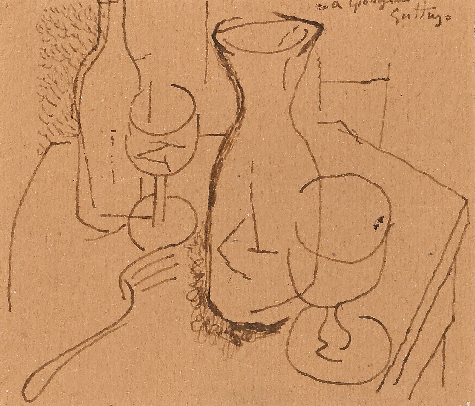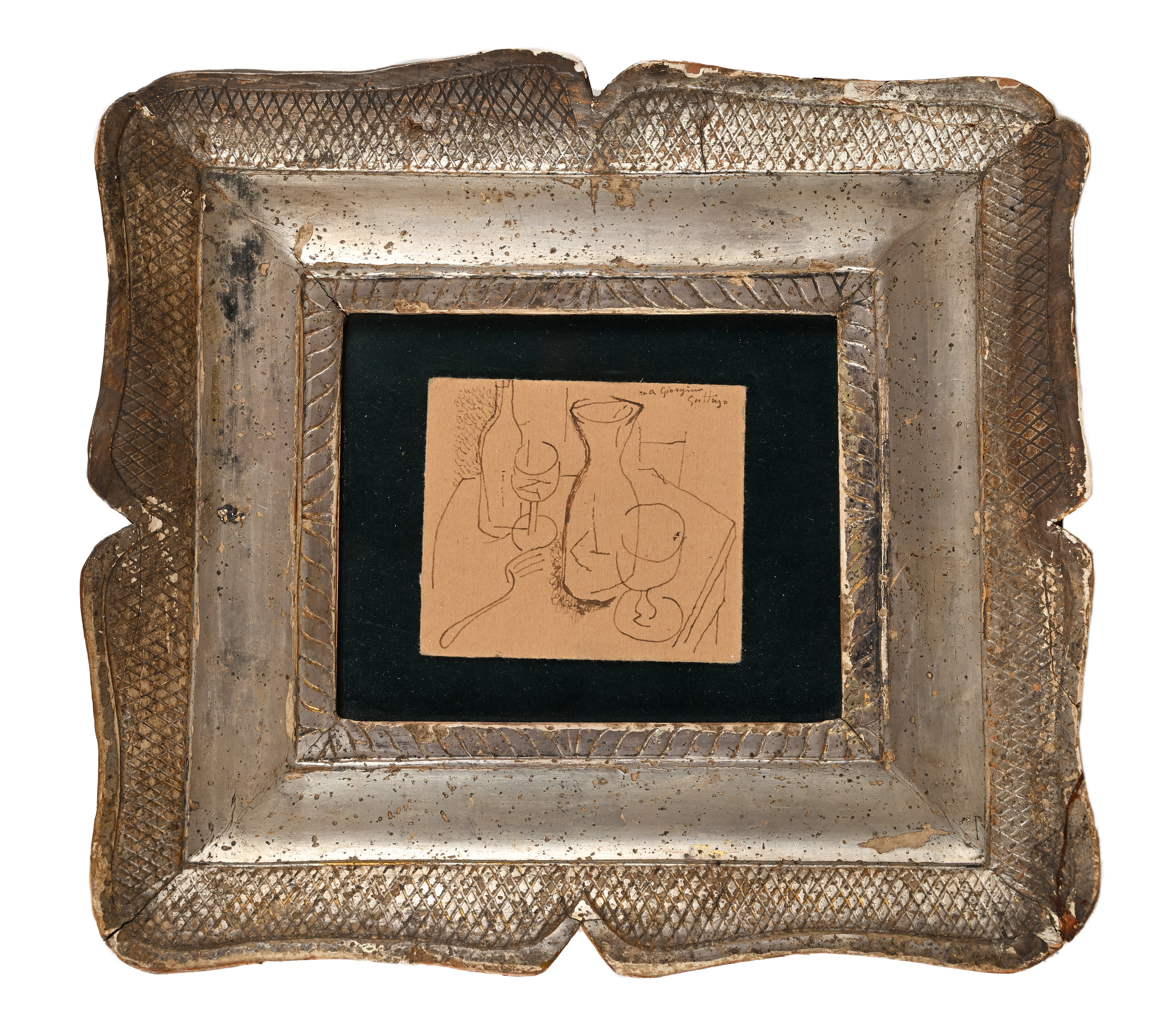 Firma e dedica in alto a destra "A Giorgina, Guttuso". Al verso reca ritratto realizzato a china