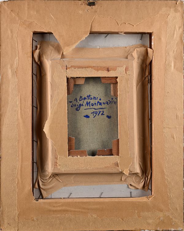 Firma e data in basso a destra "Montanarini '71". Al verso reca dedica di pugno dell'artista