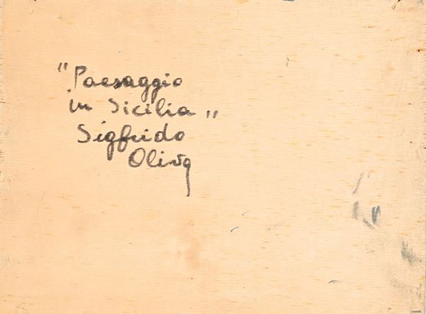 Firma in basso a destra "Sigfrido Oliva". Al verso firma e titolo