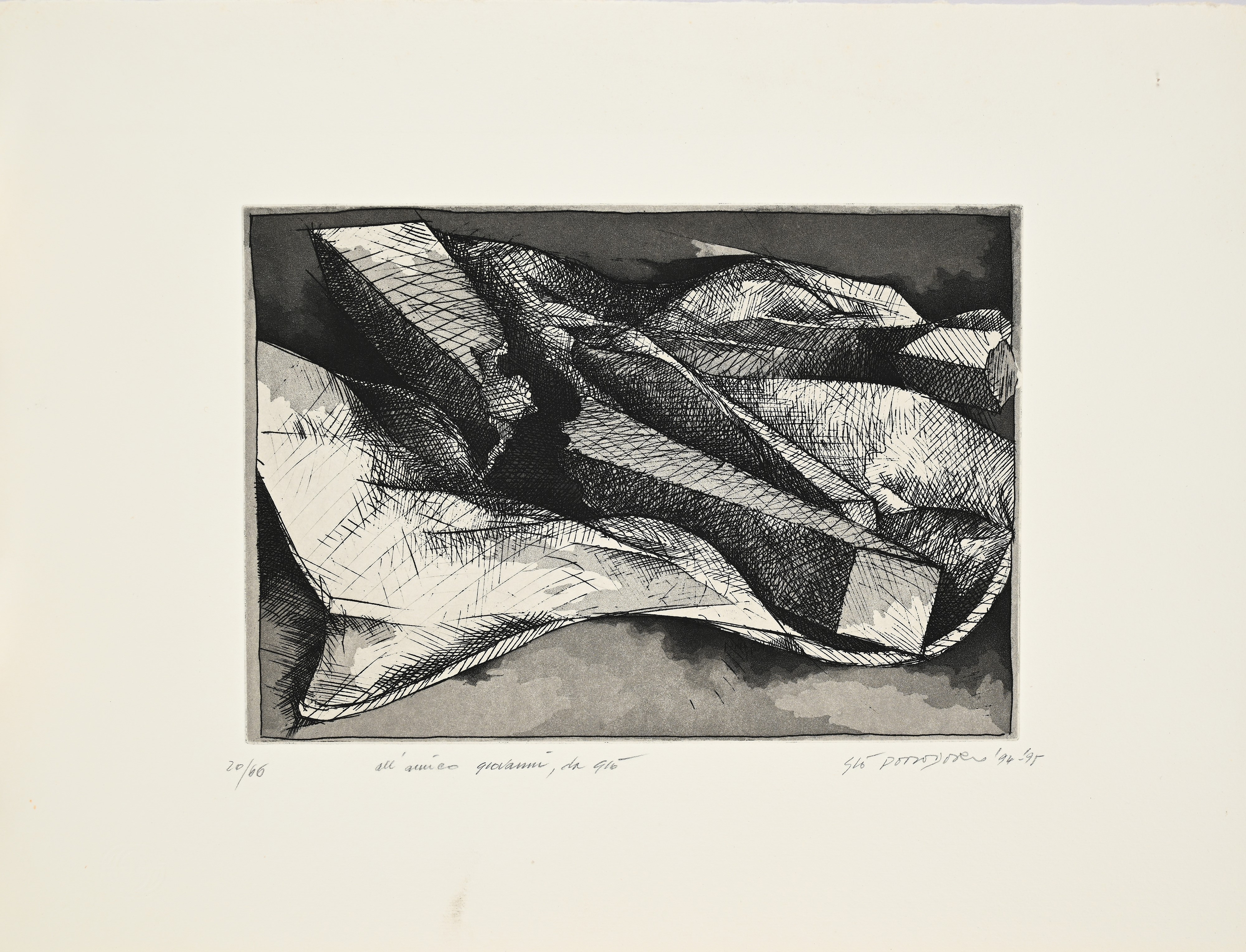 Firma, data, dedica e numerazione "All'amico Giovanni da Giò, Giò Pomodoro '94/'95, 20/66"