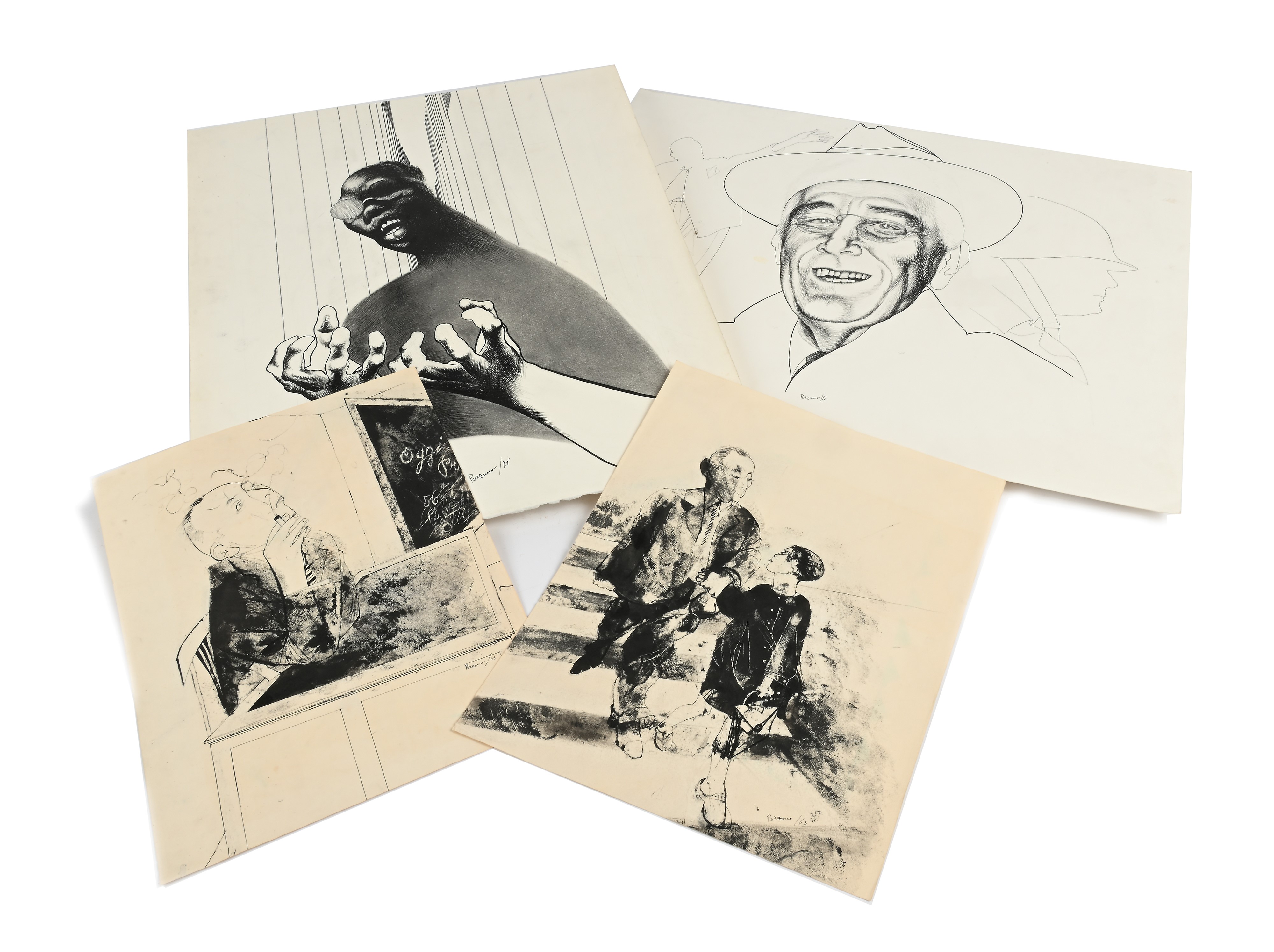 Gli altri due sempre realizzati a inchiostro su carta, sono realizzati nel 1971 e 1972. Misurano cm 62x52 e 52x69. Entrami firmati e datati