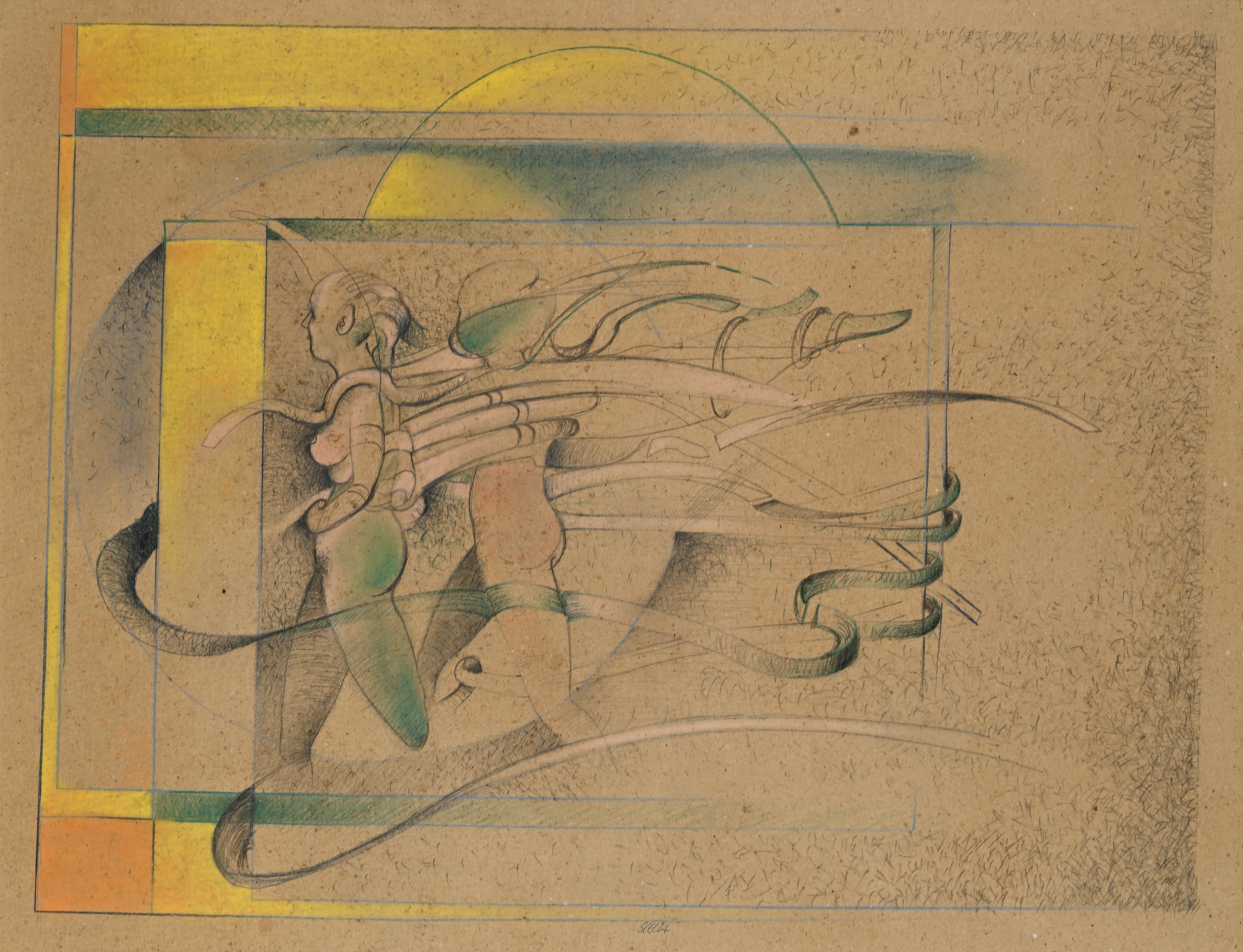 Matita e pastelli colorati su carta paglia
