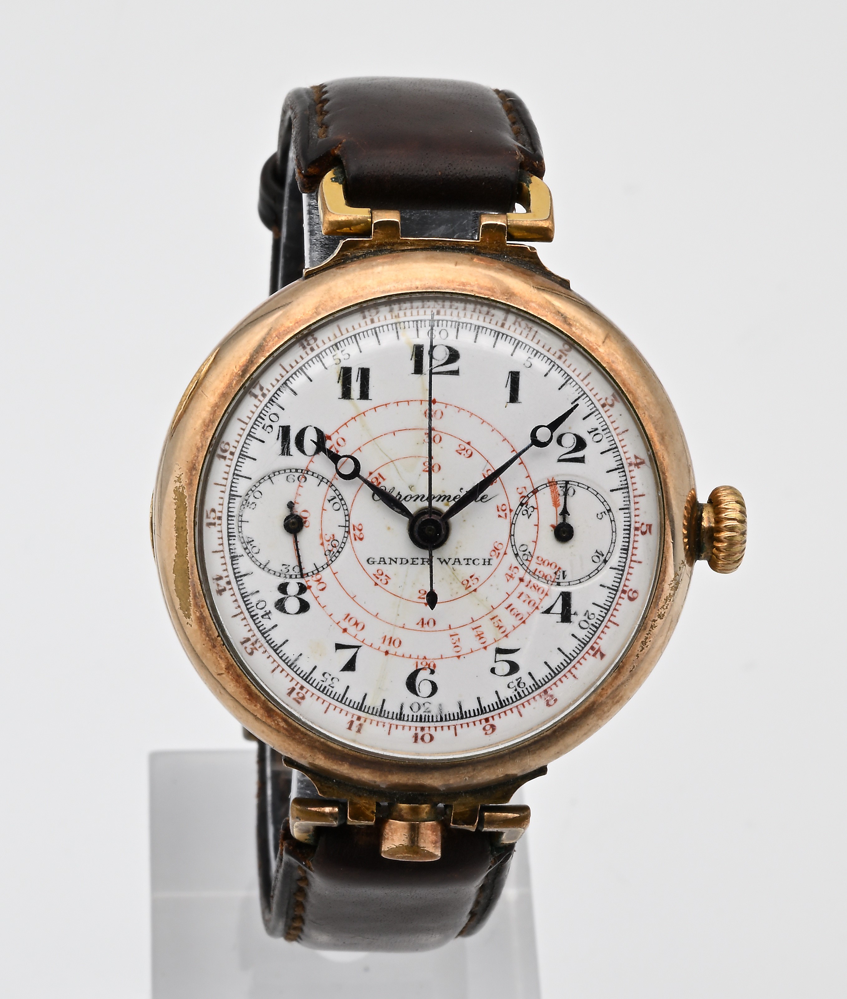Gander Watch - Orologio da polso cronografo monopulsante a carica meccanica da uomo in metallo placcato oro giallo, anni '20