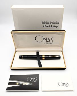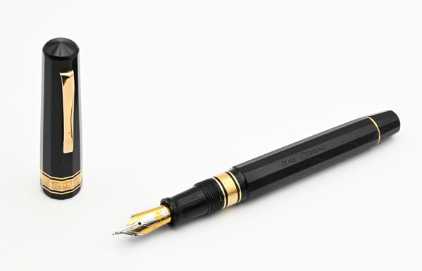 Omas Gentleman - Penna stilografica in resina nera con particolari dorati con incisa sul fusto scritta RaiUno