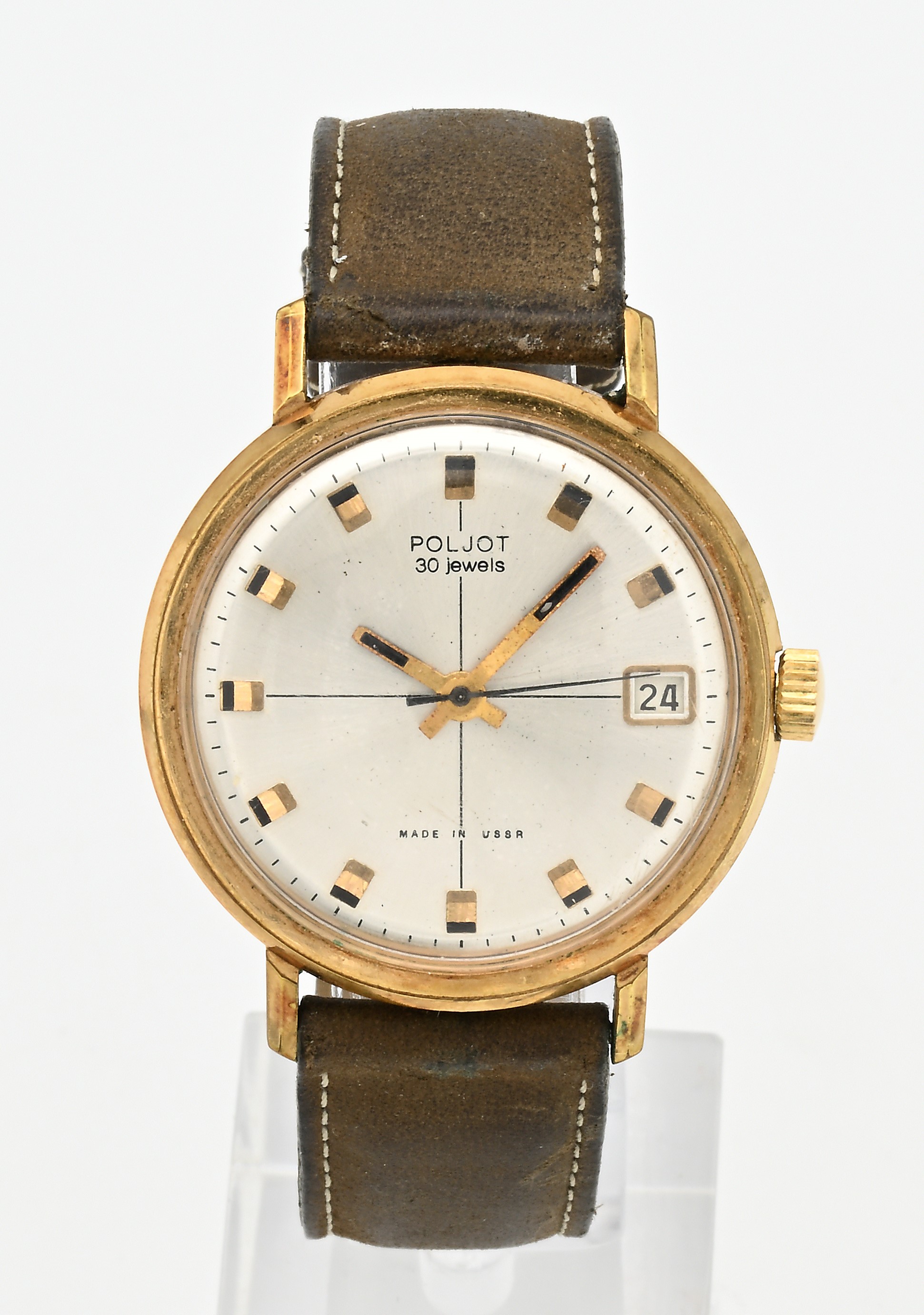 Poljot 2616 - Orologio da polso automatico con datario da uomo in metallo placcato in oro giallo con fondello in acciaio, anni '60