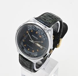 Raketa Perpetual Calendar 2628H - Orologio da polso calendario perpetuo a carica meccanica in metallo cromato, anni '80