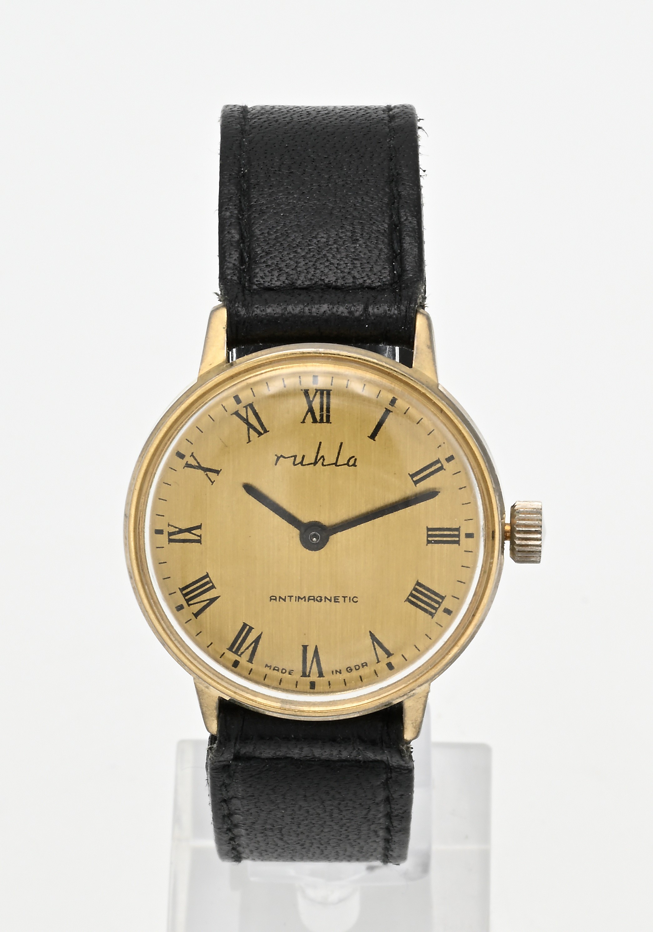 Ruhla Antimagnetic - Orologio da polso a carica manuale da uomo in metallo dorato con fondello in acciaio, anni '70