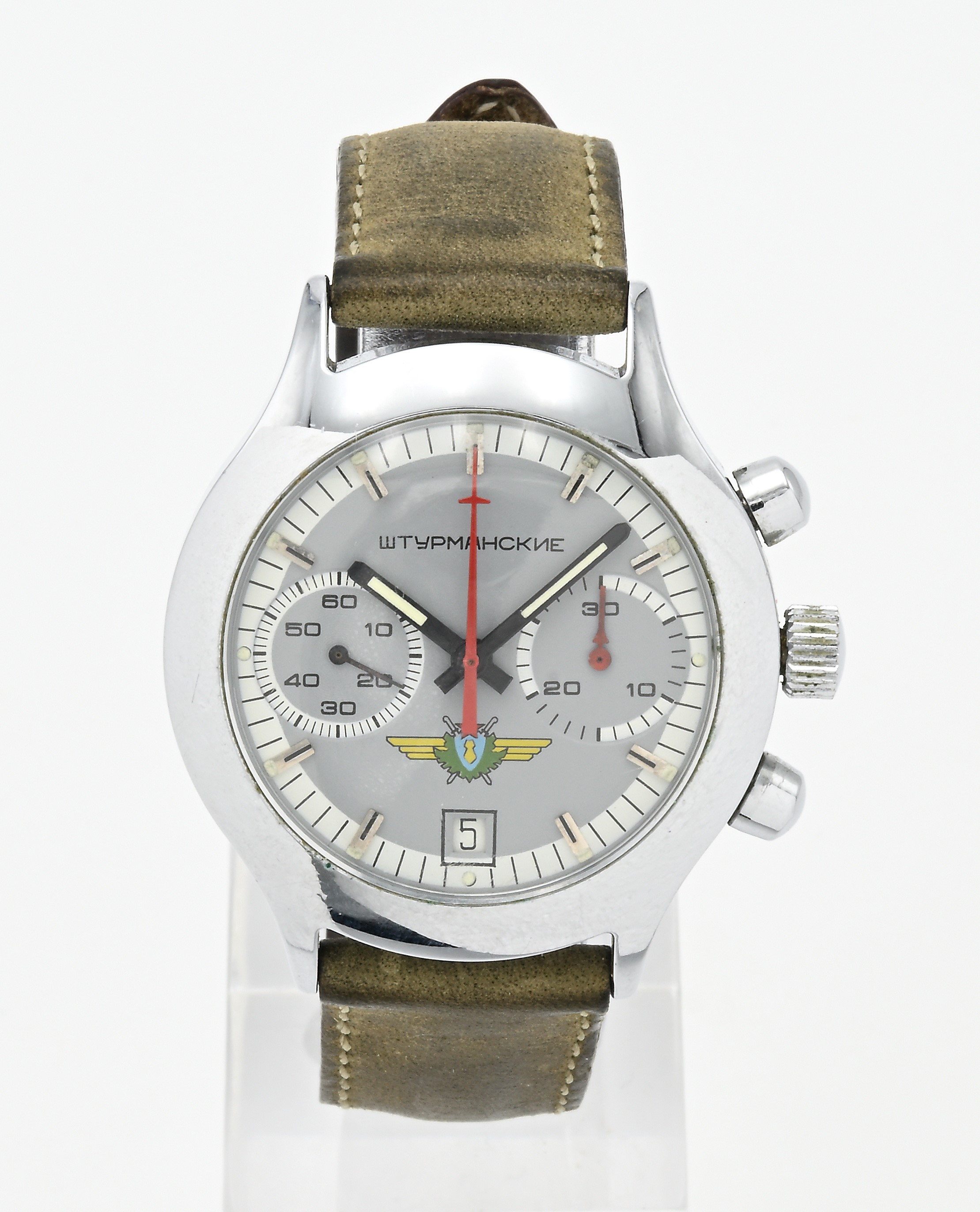 Sturmanskie Poljot 3133 - Orologio da polso Cronografo con datario a carica manuale da uomo in acciaio, anni '80/'90