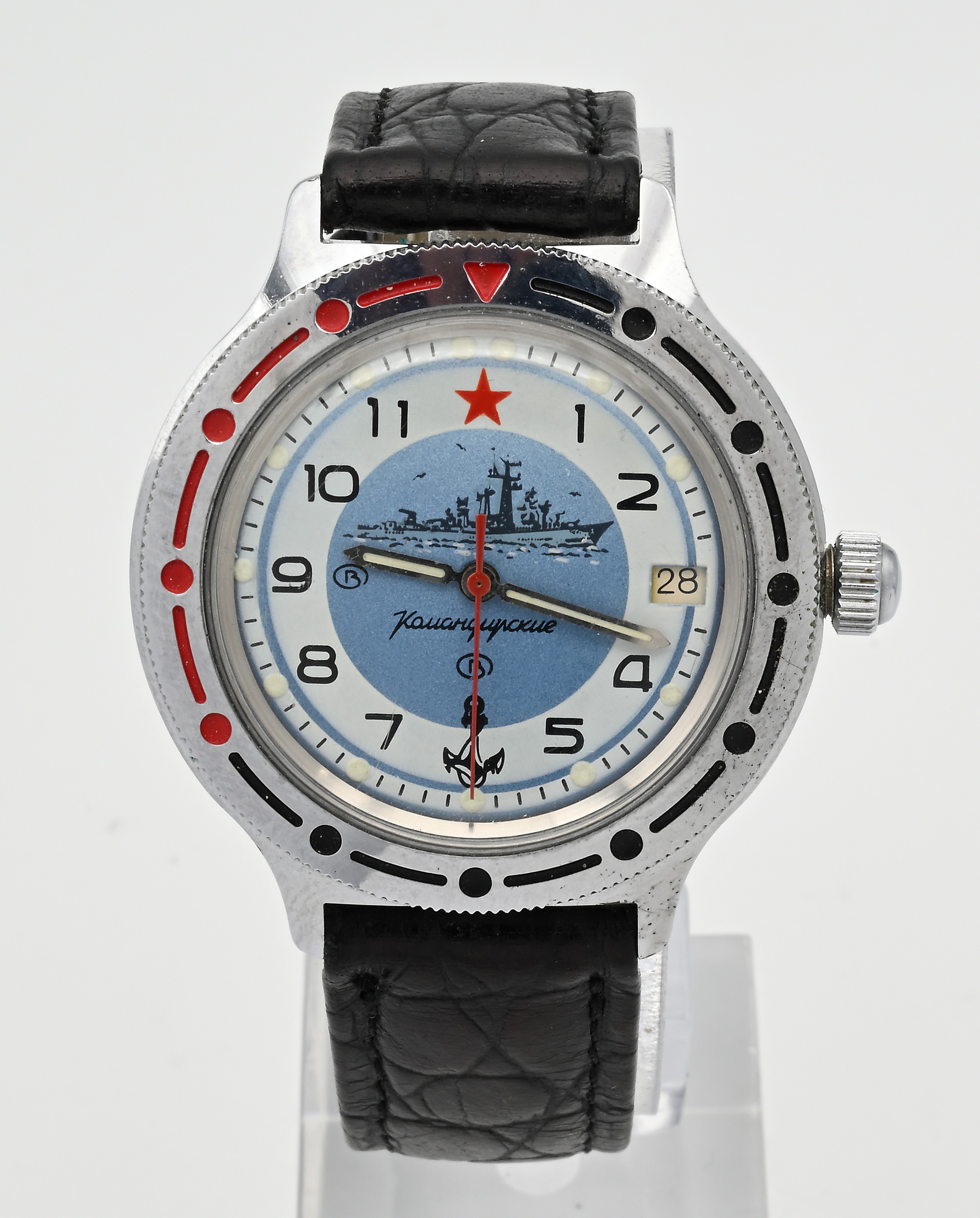 Vostok Komandirskie - Orologio da polso automatico con datario da uomo in metallo cromato con fondello in acciaio