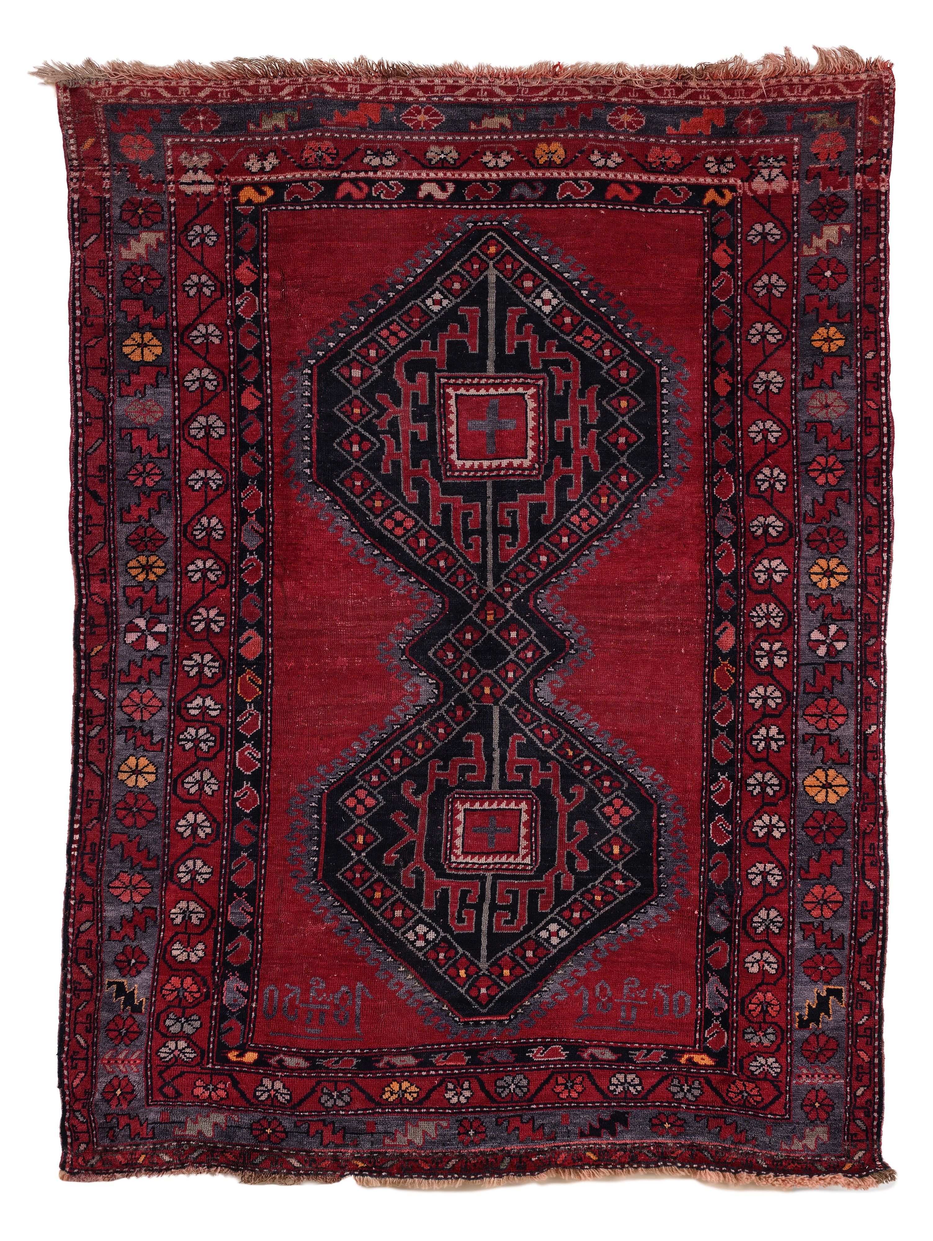 Tappeto caucasico Kazak a medaglioni, datato, Caucaso, inizi XX secolo
