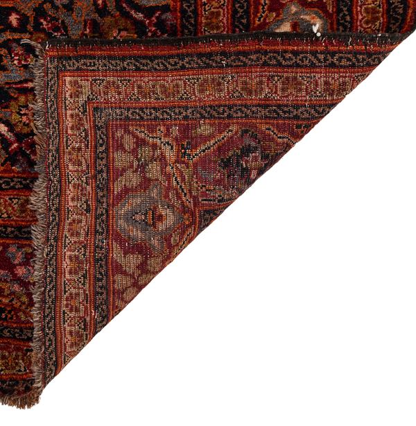 Tappeto persiano Kashan fondo rosso rubino con rosone centrale, XX secolo